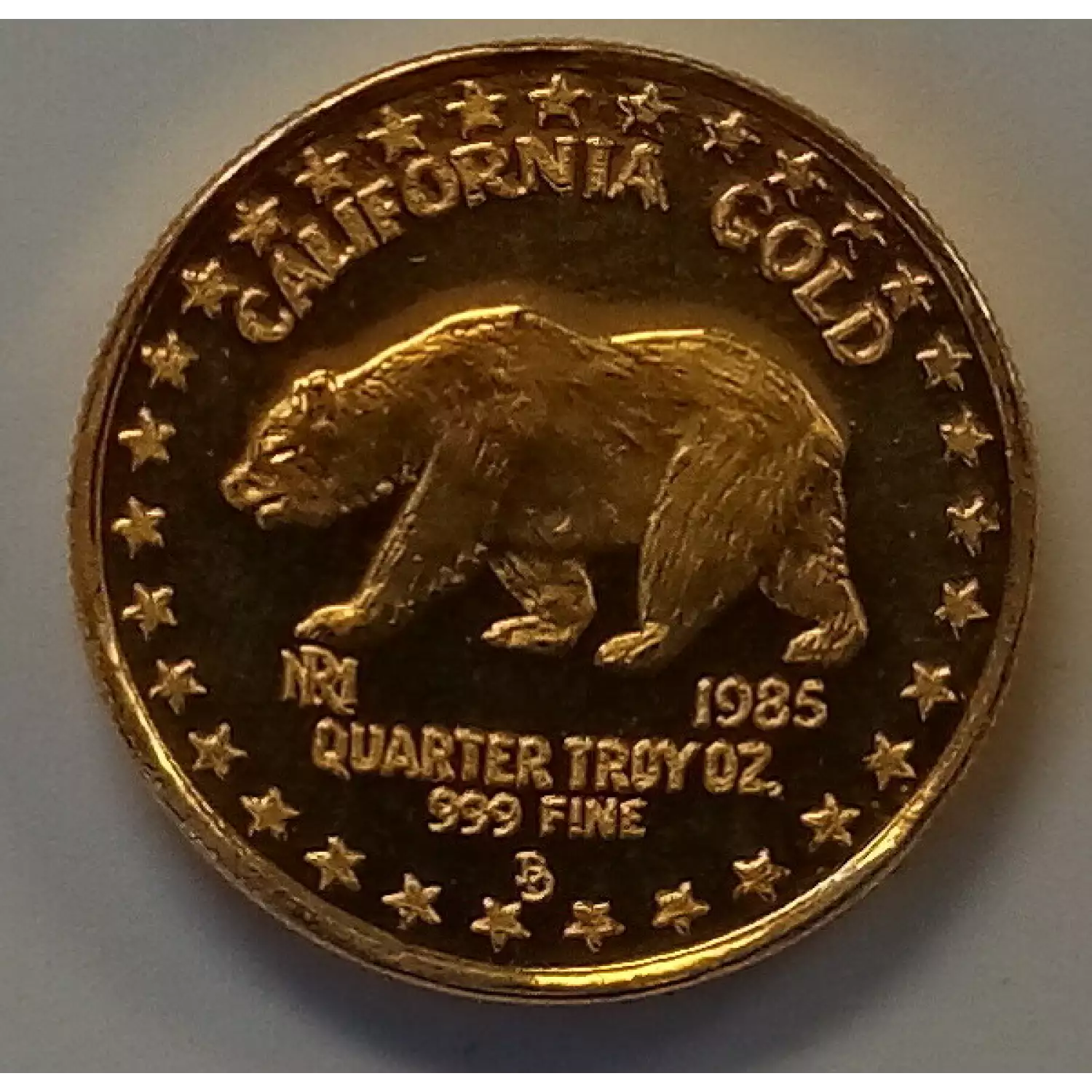 The 1/4oz California Golden Bear Coin was produced by the US Mint at West Point, NY.