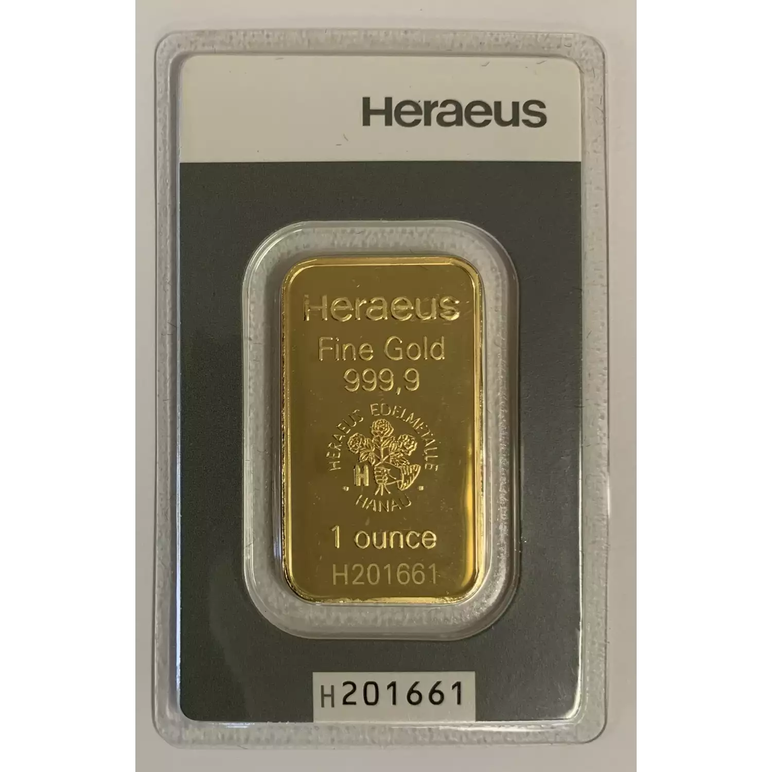 Each 1oz Heraeus Minted Gold Bar contains 1 gram of fine 24 carat gold with a purity level of .9999.