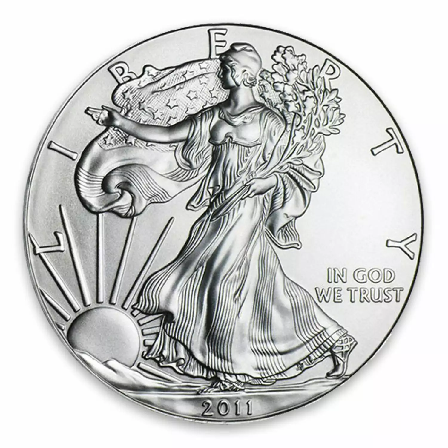 The 2011 1 oz American Silver Eagle contains 1 troy ounce of .999 fine silver and has a face value of $1. The innovative design and purity of these coins make them highly popular among investors and collectors.