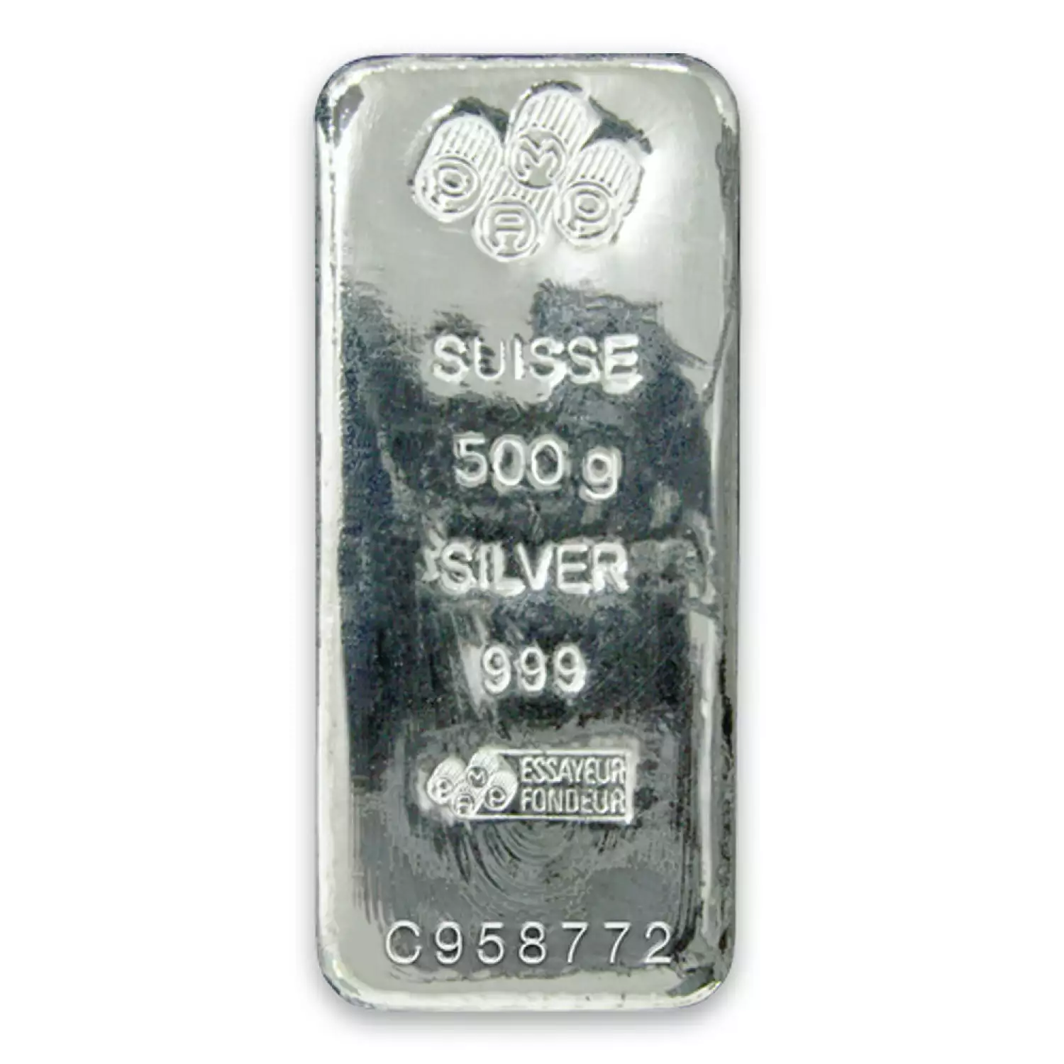 Each 500g PAMP Silver Bar is composed of 500 grams of .999 fine silver. Silver bars and silver coins may tend to tarnish over time depending upon the environment they are stored.