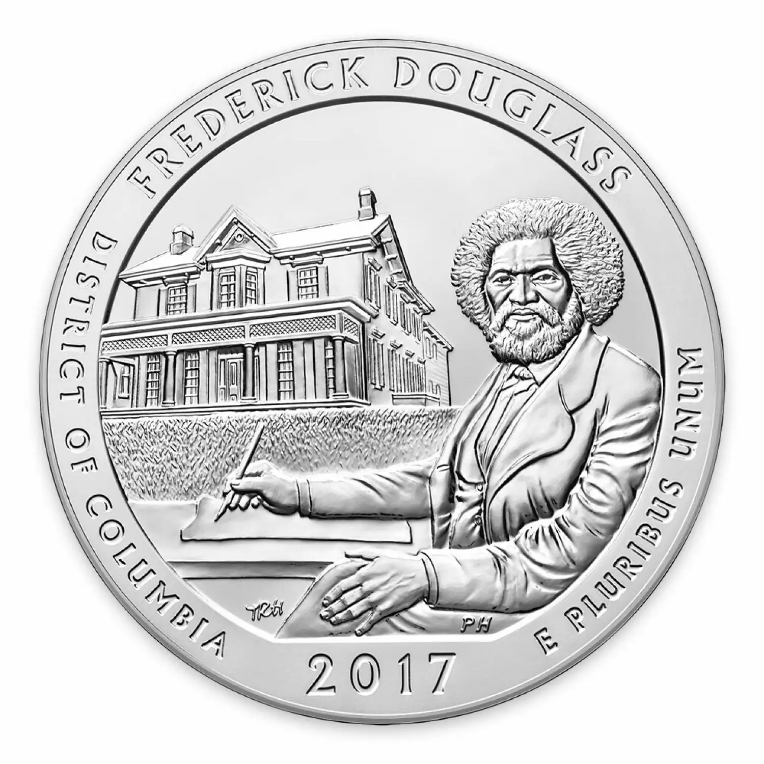 Since 2010, the US Mint released five silver America the Beautiful coins annually. The 5oz silver coins will be complete in 2021, each representing a historical monument or a treasured national park. These bullion coins were introduced following the success of the state quarter program.The Frederick Douglass National Historic Site, administered by the National Park Service, is located at 1411 W Street, SE, in Anacostia, a neighborhood east of the Anacostia River in Southeast Washington, D.C.. Established in 1988 as a National Historic Site, the site preserves the home and estate of Frederick Douglass, one of the most prominent African Americans of the 19th century.