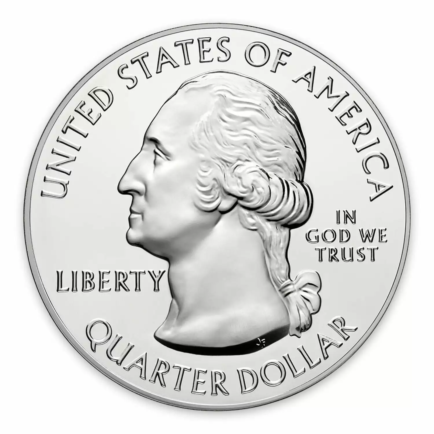 The obverse carries the familiar coin portrait of George Washington - the portrait featured on current Washington quarter