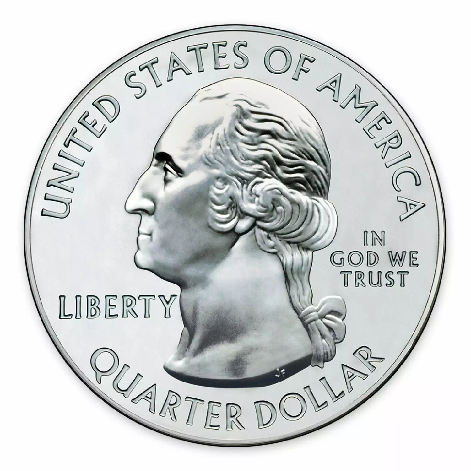 The obverse carries the familiar coin portrait of George Washington - the portrait featured on current Washington quarter