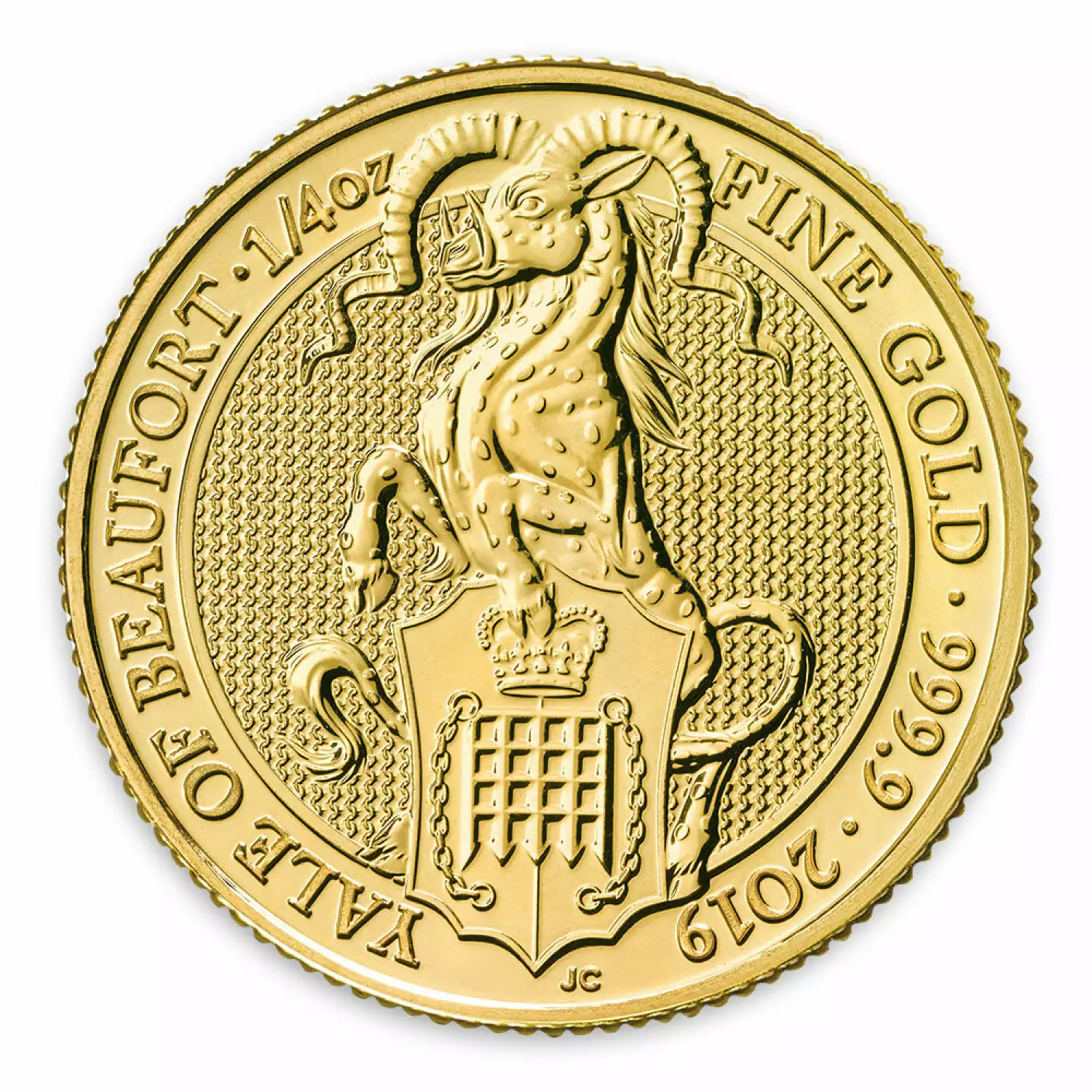 The yale is a mythical beast, described as the size of a hippopotamus with the tail of an elephant, the jaws of a boar and of a black or tawny colour. It descends to The Queen through Henry VII, who inherited it from his mother, Lady Margaret Beaufort, who went on to play a central role in the Wars of the Roses. Her position as matriarch of the Tudor dynasty gave the yale prestige and symbolic meaning.