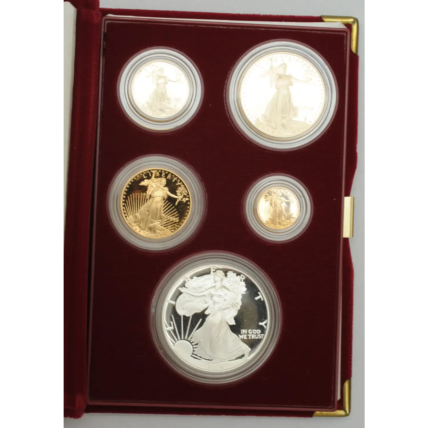 | Name | 1995-W – Five Coin Set - 1/10, 1/4, 1/2, 1oz Gold, 1oz Silver Eagles Anniversay Proof - with Original Govt Packaging |