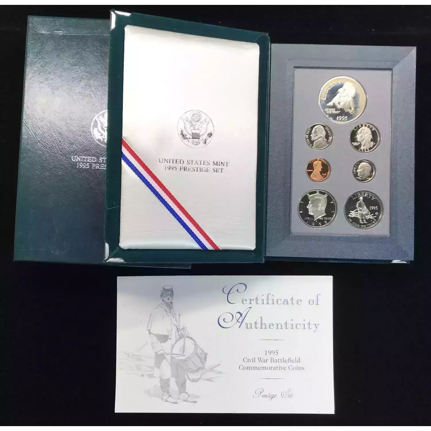 THE SET YOU RECEIVE IS OUR CHOICE. IT WILL BE A SET ESTIMATED TO BE OF THE GRADE / QUALITY INDICATED. THE IMAGE SHOWN IS AN EXAMPLE ONLY. 1995 Prestige Proof Set - Seven Coin Set - Box & COA