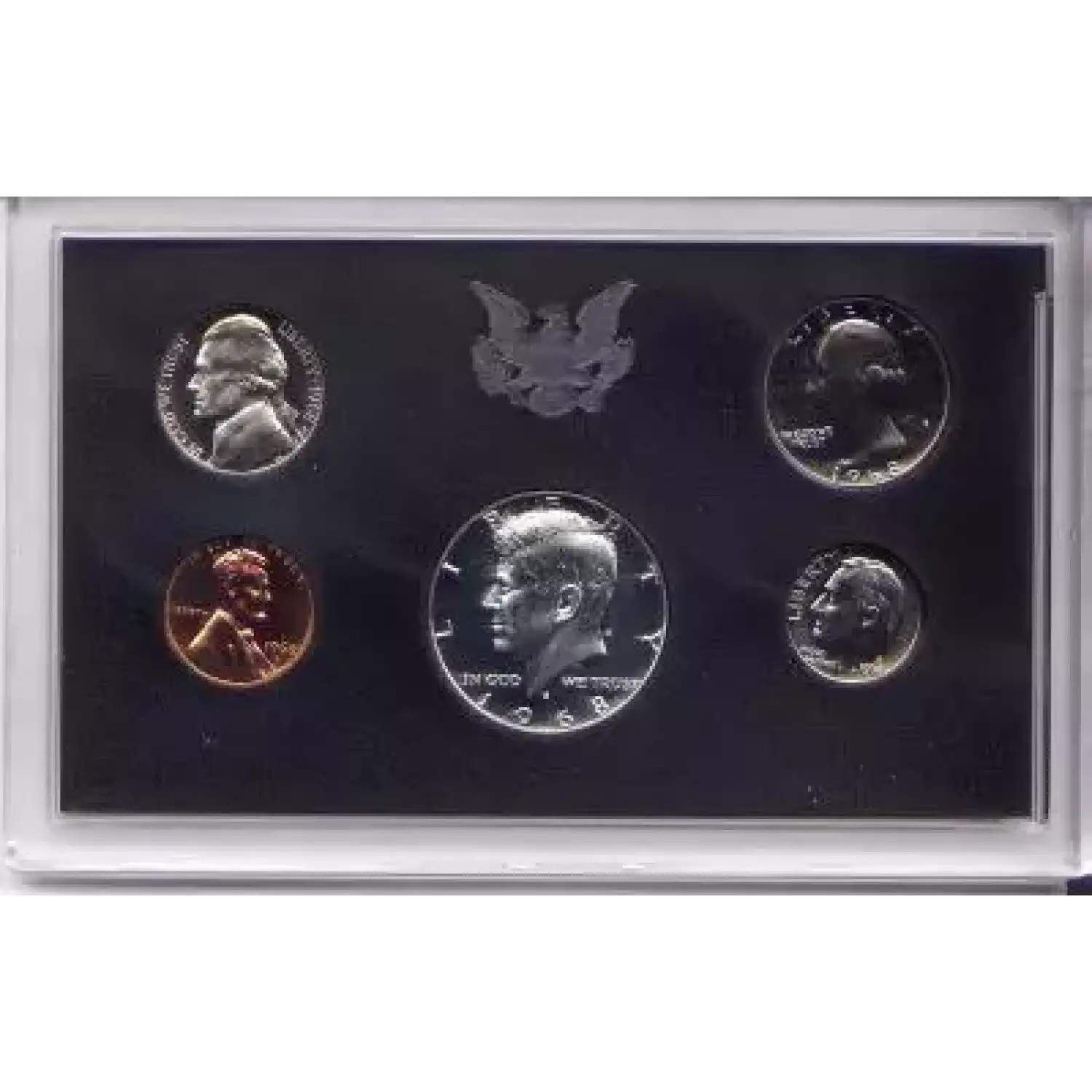 THE SET YOU RECEIVE IS OUR CHOICE. IT WILL BE A SET ESTIMATED TO BE OF THE GRADE / QUALITY INDICATED. THE IMAGE SHOWN IS AN EXAMPLE ONLY. Mint Proof Set - 1968 5 Coins ($0.91 FV) - Set