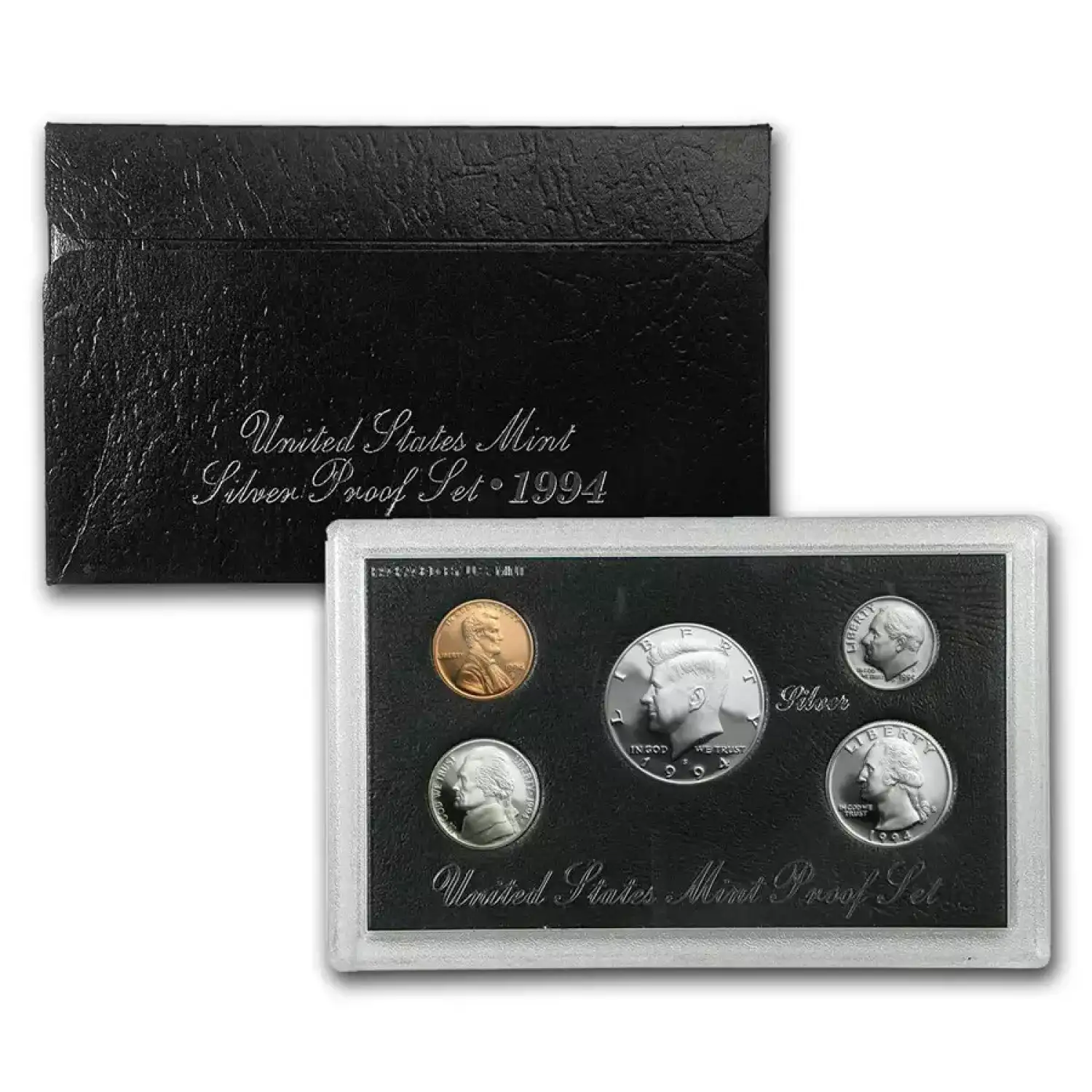 THE SET YOU RECEIVE IS OUR CHOICE. IT WILL BE A SET ESTIMATED TO BE OF THE GRADE / QUALITY INDICATED. THE IMAGE SHOWN IS AN EXAMPLE ONLY. Mint Proof Set - 1994S 5 Coins ($0.91 FV) Silver - Set