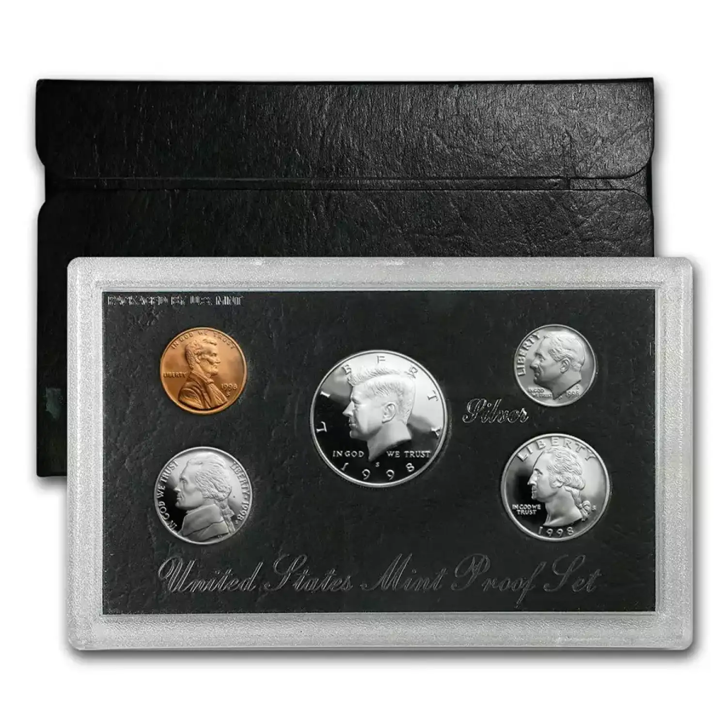 THE SET YOU RECEIVE IS OUR CHOICE. IT WILL BE A SET ESTIMATED TO BE OF THE GRADE / QUALITY INDICATED. THE IMAGE SHOWN IS AN EXAMPLE ONLY. Mint Proof Set - 1998S 5 Coins ($0.91 FV) Silver - Set