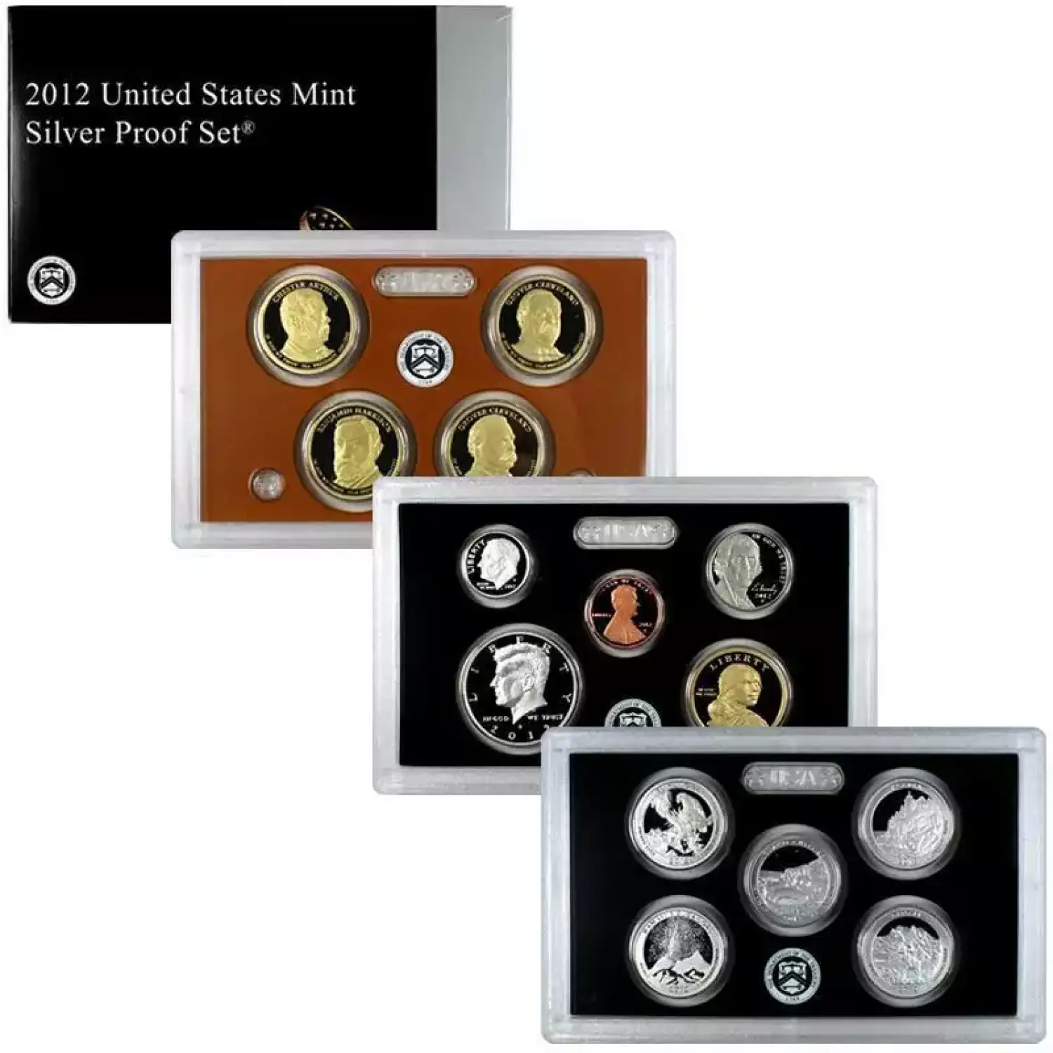 THE SET YOU RECEIVE IS OUR CHOICE. IT WILL BE A SET ESTIMATED TO BE OF THE GRADE / QUALITY INDICATED. THE IMAGE SHOWN IS AN EXAMPLE ONLY. Mint Proof Set - 2012S 14 Piece Silver ($6.91 FV) - Set