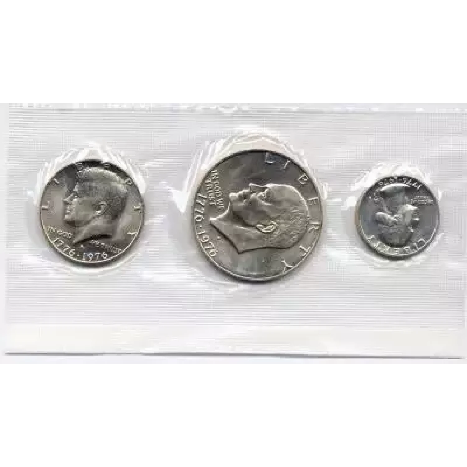 THE SET YOU RECEIVE IS OUR CHOICE. IT WILL BE A SET ESTIMATED TO BE OF THE GRADE / QUALITY INDICATED. THE IMAGE SHOWN IS AN EXAMPLE ONLY. Mint Uncirculated Set - 1976 3 Piece P-D Silver Clad ($1.75 FV) - Set