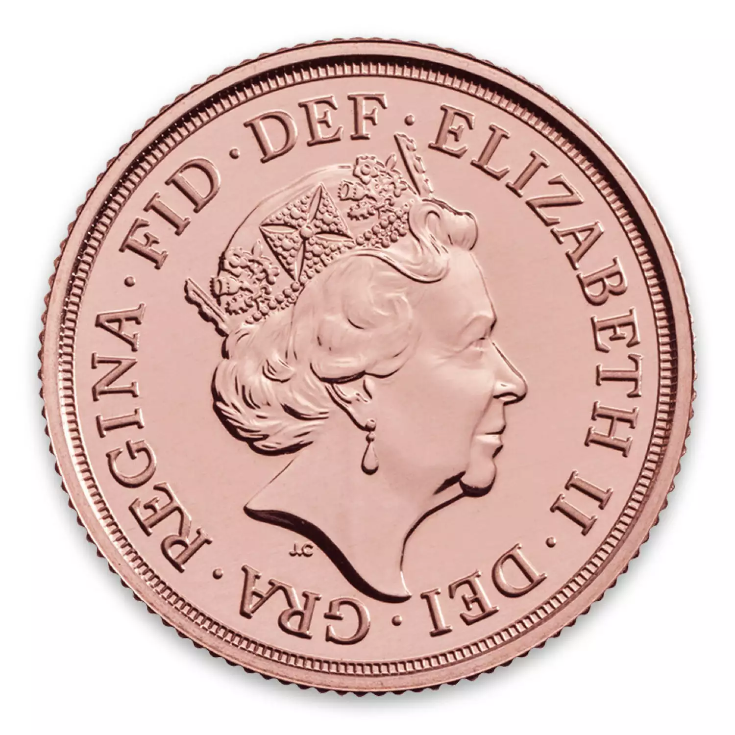 The 2020 Double British Gold Sovereign is one of the world’s most popular gold bullion coins. The British Gold Sovereign weighs .4708 troy ounces and contains 22 carat of gold. The reverse of the coin depicts a representation of St. George fighting a dragon with his sword and it was designed by Benedetto Pistrucci.