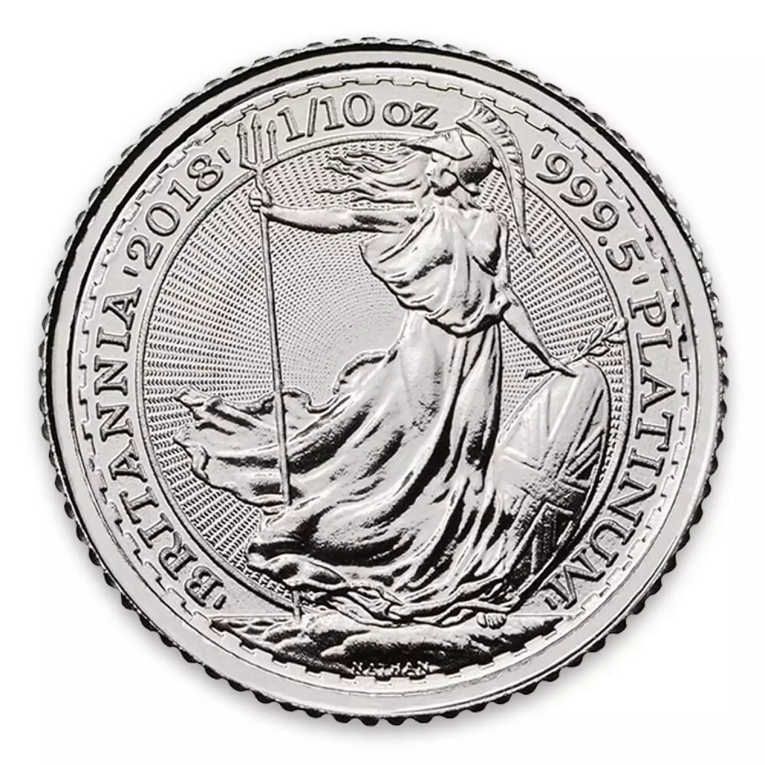 The 2018 1/10oz British Platinum Britannia is the newest annual release of the Britannia Platinum coins and is composed of 0.1 oz of 999.5 fine platinum. The obverse of the coin features Effigy of Her Majesty Queen Elizabeth II. The reverse depicts the image of Britannia, guardian of Britain. These striking platinum coins appeal to both investors and collectors.