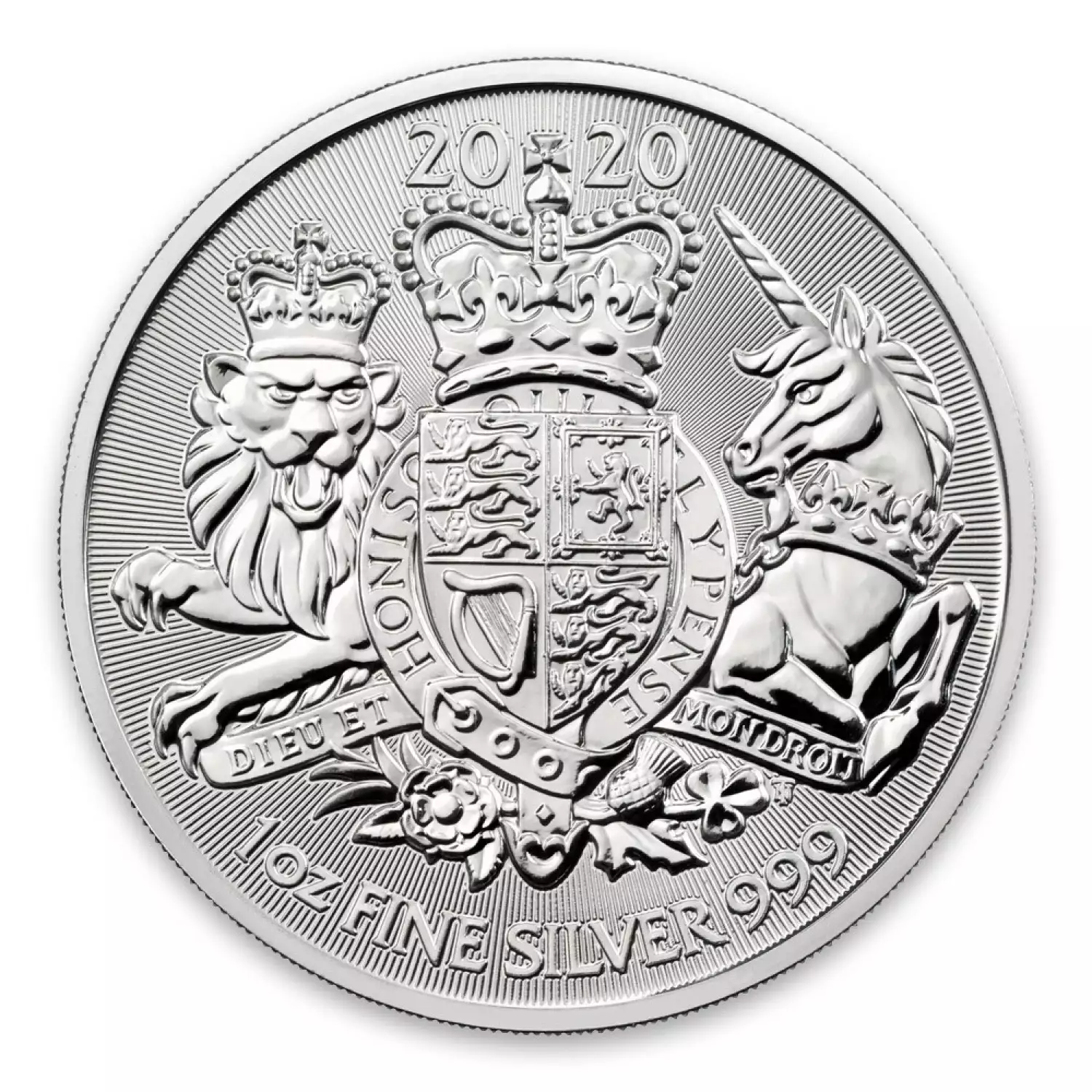 The design of the 2020 1oz Royal Arms Silver Coin it’s a reinterpretation by Timothy Noad and it’s based on the original design made by Eric Sewell in 1983. The reverse depicts a crowned shield along with the Lion of England on the left side and Unicorn of Scotland on the right side. The obverse displays Queen Elizabeth II along with the face value of 2 pounds.
