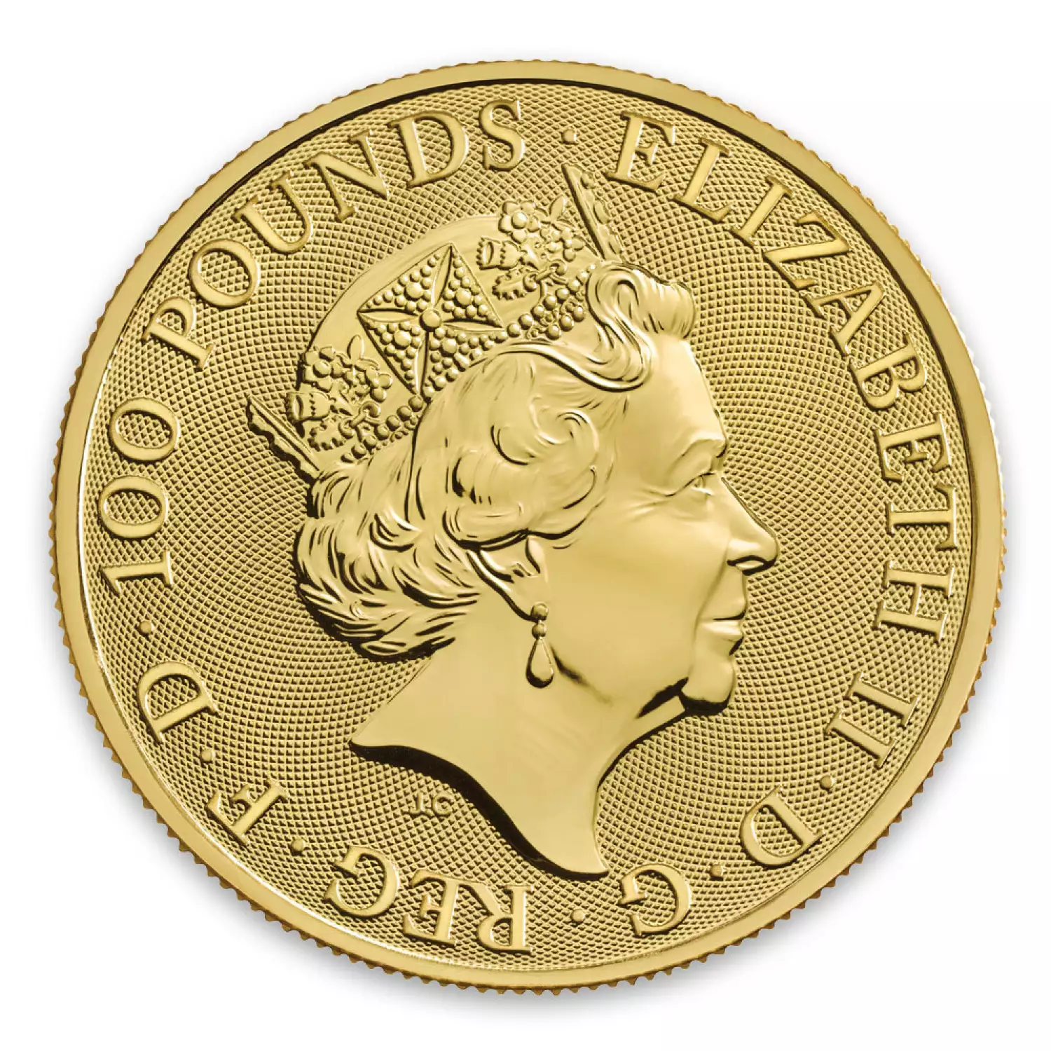 The design of the 2020 1oz Royal Arms Gold Coin it’s a reinterpretation by Timothy Noad and it’s based on the original design made by Eric Sewell in 1983. The reverse depicts a crowned shield along with the Lion of England on the left side and Unicorn of Scotland on the right side. The obverse displays Queen Elizabeth II along with the face value of 100 pounds.