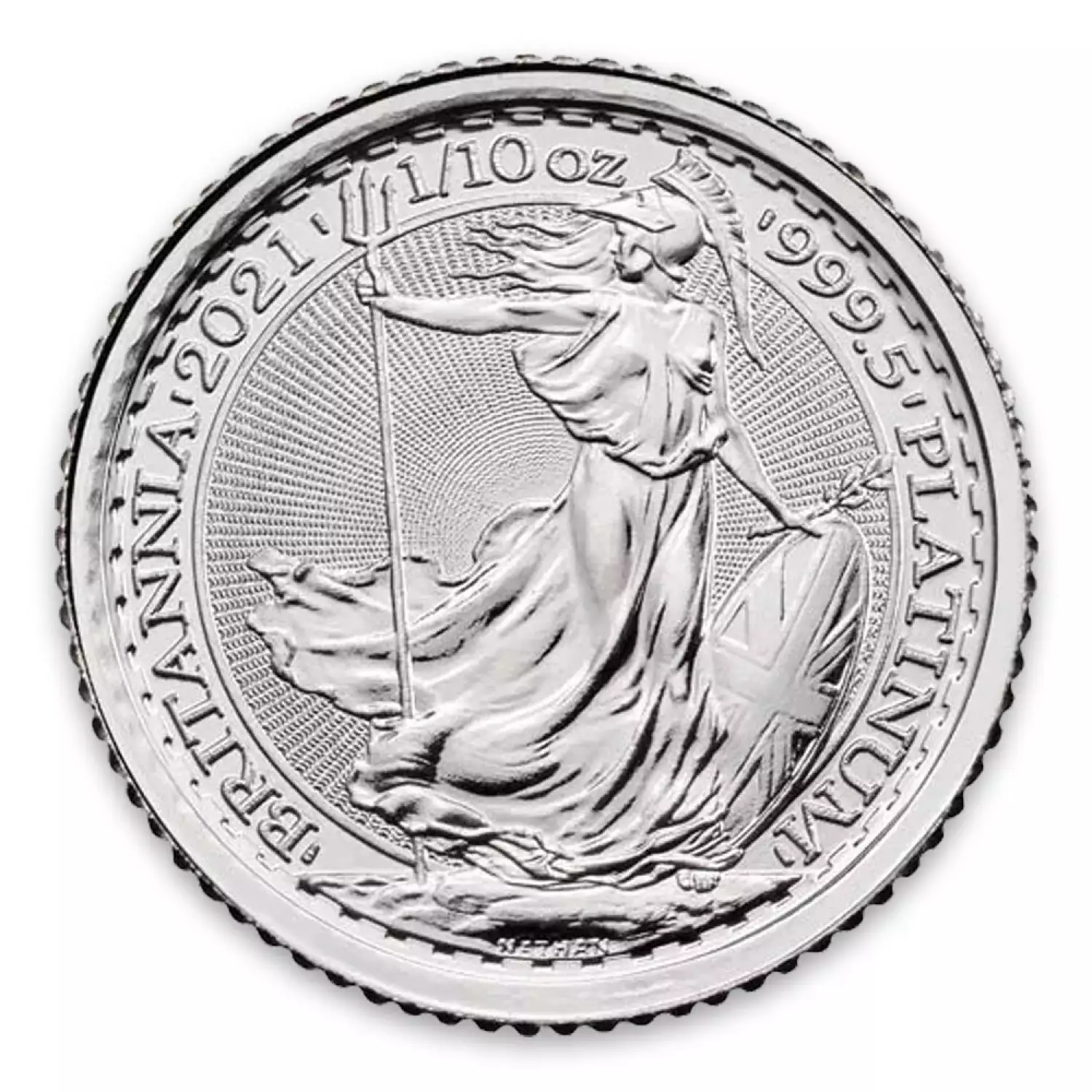 The 2021 1/10oz British Platinum Britannia is the newest annual release of the Britannia Platinum coins and is composed of 1/10 oz of 999.5 fine platinum. The obverse of the coin features Effigy of Her Majesty Queen Elizabeth II. The reverse depicts the image of Britannia, guardian of Britain. These striking platinum coins appeal to both investors and collectors.