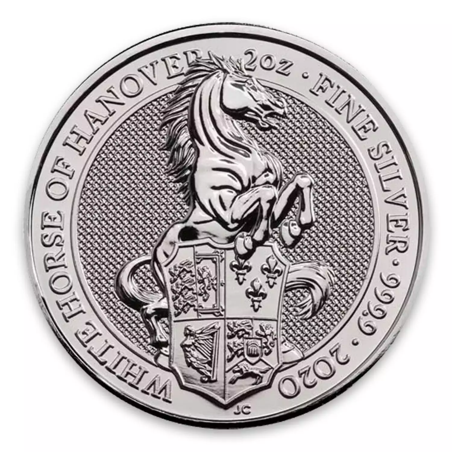 The Britain Queen's Beasts celebrate the British Monarch and the centuries of fascinating heraldry. This strikingly beautiful silver coin contains 2 oz of .9999 fine silver. The 2020 2oz Gold Britain Queen's Beast: The White Horse has a limited mintage and it's the eighth coin from this collection. The coin is designed by Jody Clark and while the observe depicts her Majesty, Queen Elizabeth II, the reverse is facing the White Horse of Hanover with the Royal Arms in front of it.