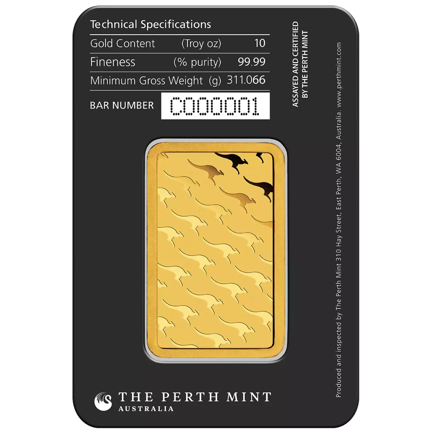 As one of the diverse bars in Australia, 10oz Australian Perth Mint gold bar – mintedappeal to investors and collectors alike. Each 10oz Australian Perth Mint gold bar – minted contains 10 troy ouncesof .9999 fine gold.A larger gold bar tends to have a lower premium per troy ounce when purchasing given the relatively fixed cost of production being absorbed into a much larger gold bar.