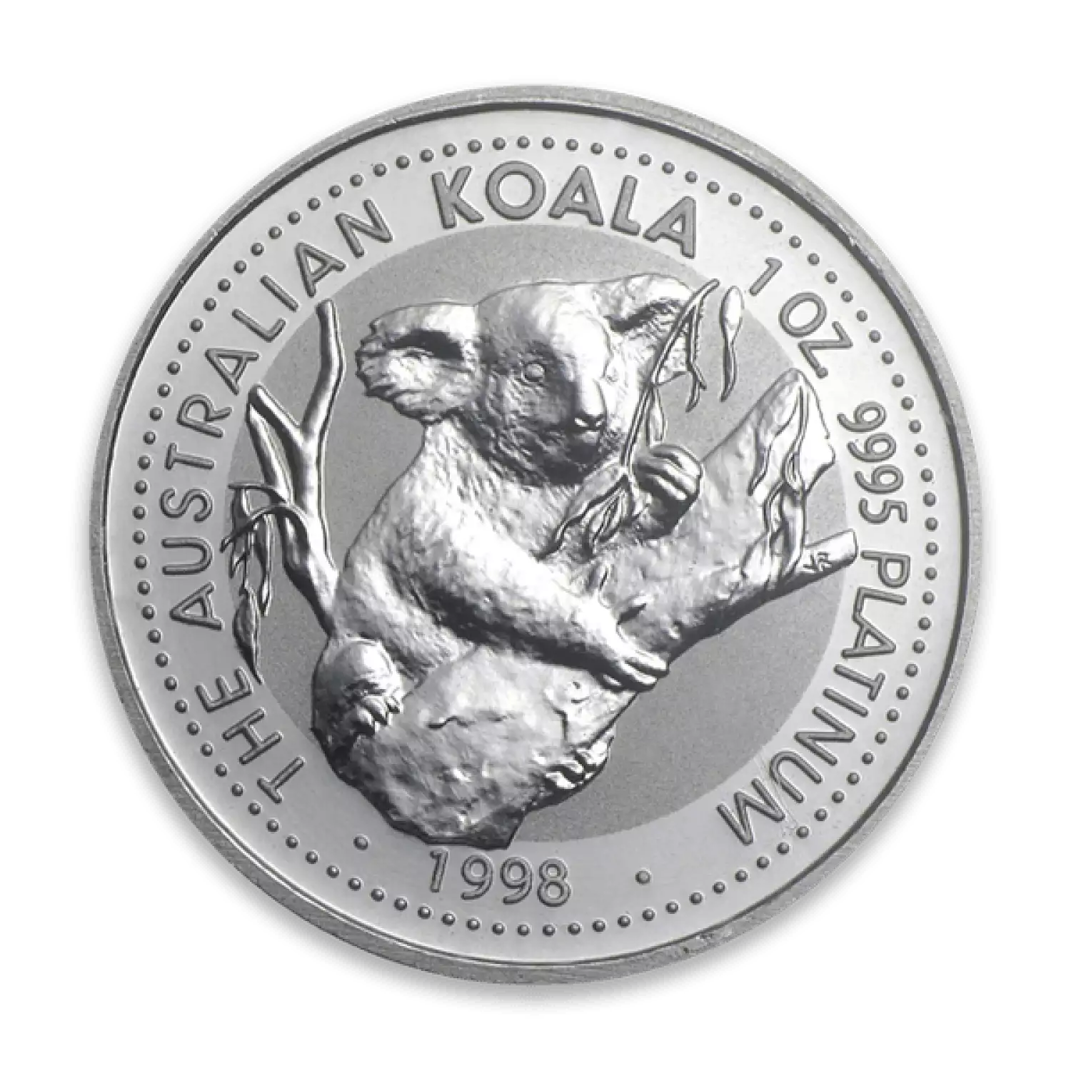 The 1oz Perth Mint Platinum Koala is one of the oldest produced modern platinum coins. This uniquely Australian animal is used by the Perth Mint on both its Platinum and Silver coins. The image changes annually. These platinum bullion coins are made to 9995 purity (meaning a minimum purity of 99.95%). Queen Elizabeth II is featured on the obverse.
