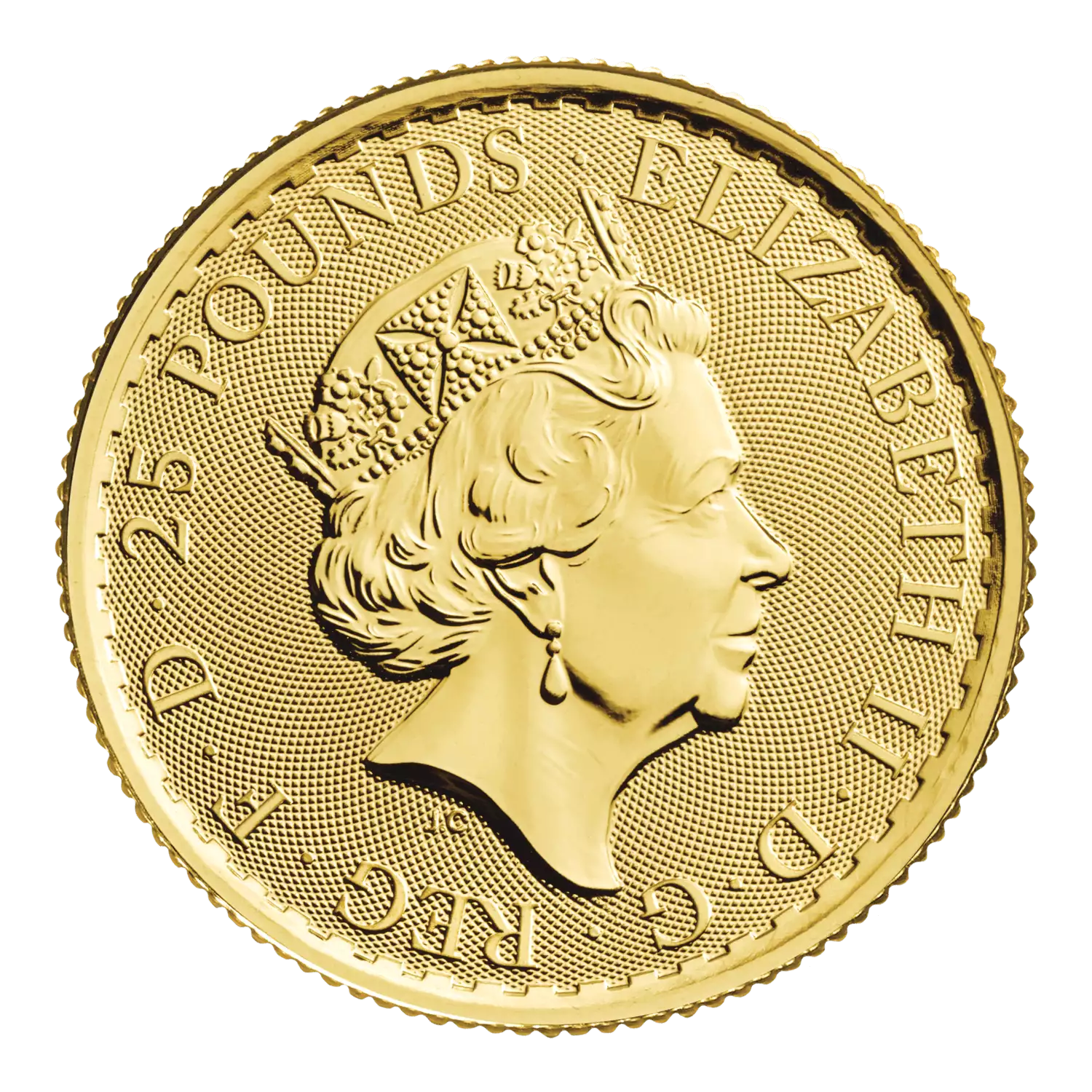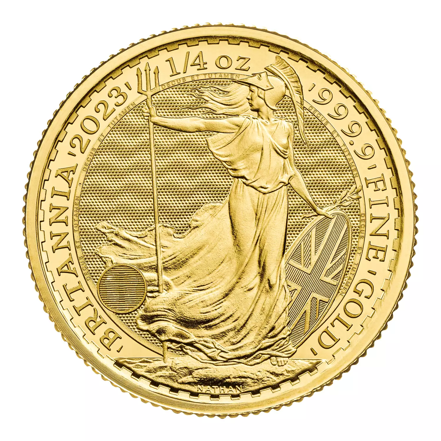 The British Gold Britannia continues to provide beauty and reliability. The 2023 1/4oz British Gold Britannia is one of the most popular investment coins in the world. Each 2023 1/4oz British Gold Britannia contains 0.25 troy ounce of .9999 fine gold. The reverse, designed by Philip Nathan has never changed since the first Britannia bullion coin in 1987. The Britannia has been a symbol through out the history and it’s first appeareance on the Roman coins is dating back over 2000 years ago.