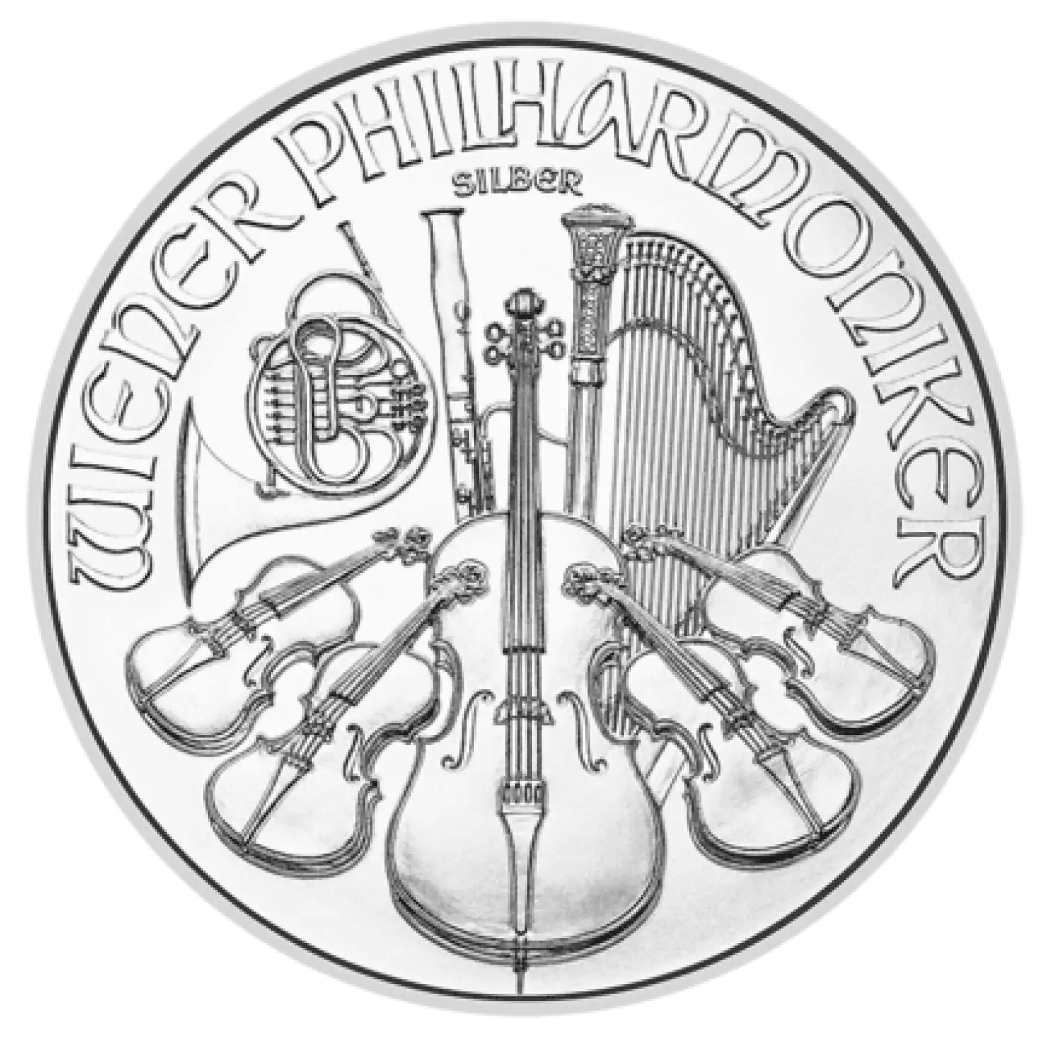The Austrian Silver Vienna Philharmonic is a silver coin produced by the Austrian Mint. It is the most popular silver bullion coin in Europe. The coin is legal tender in Austria with a face value of 1.50 Euros. It weighs exactly 1 troy ounce of .999 fine silver. This Austrian Philharmonic silver coin has a beautiful design and is popular among all collectors and investors alike.