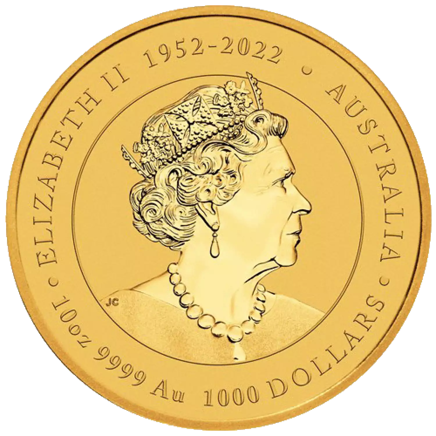 The 2024 10 oz Australian Perth Mint Gold Lunar: Year of the Dragon is composed of 10 oz of .9999 fine gold and has a face value of 1000 AUD.