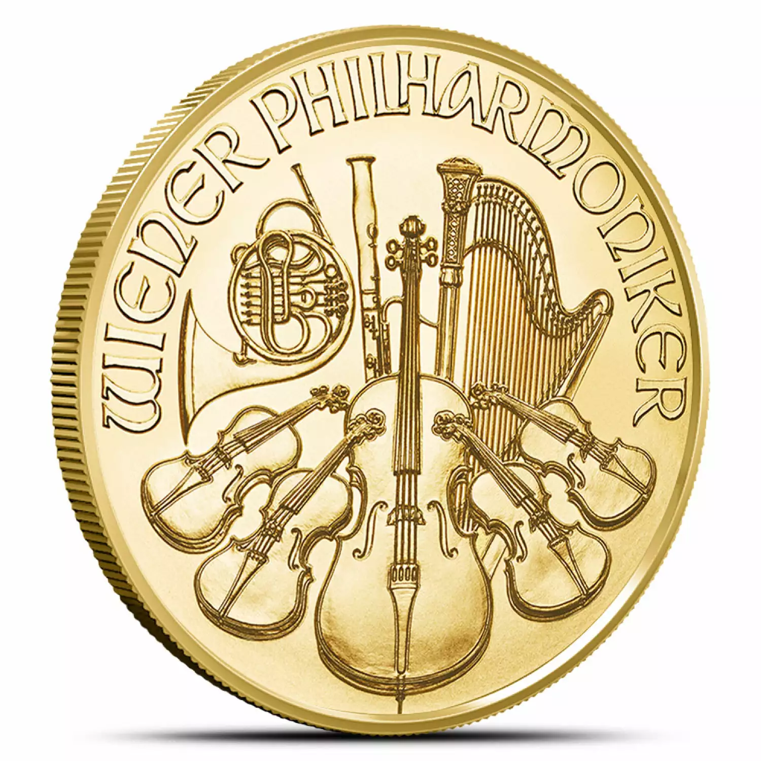 The 2025 1/25oz Austrian Gold Philharmonic Coin is a stunning addition to any gold bullion collection. This fractional gold coin is part of the Austrian Mint's renowned Philharmonic series, which has been a favorite among collectors and investors alike since its introduction in 1989.