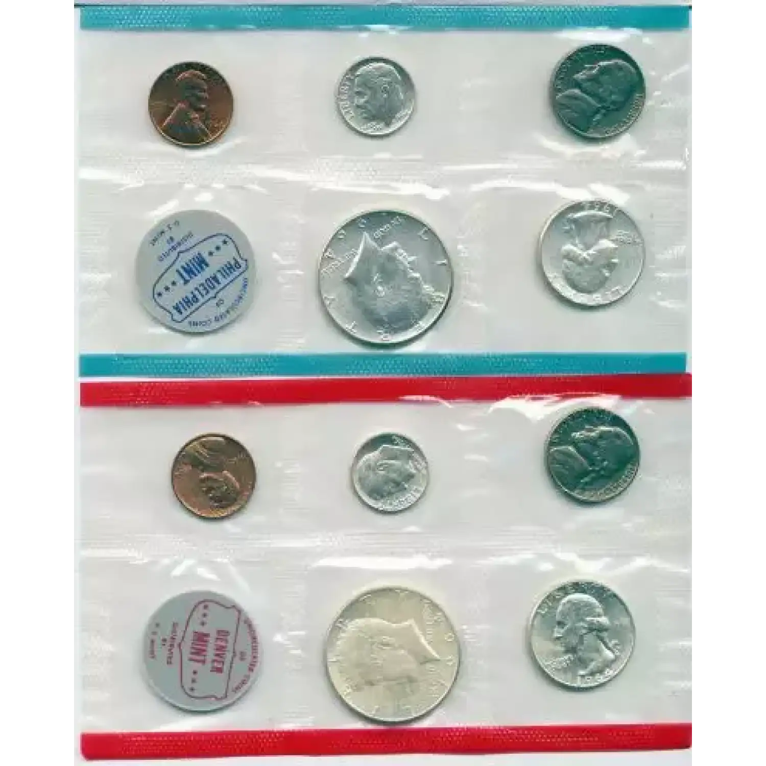 THE SET YOU RECEIVE IS OUR CHOICE. IT WILL BE A SET ESTIMATED TO BE OF THE GRADE / QUALITY INDICATED. THE IMAGE SHOWN IS AN EXAMPLE ONLY. Mint Uncirculated Set - 1964 10 Piece P-D ($1.82 FV) - Set