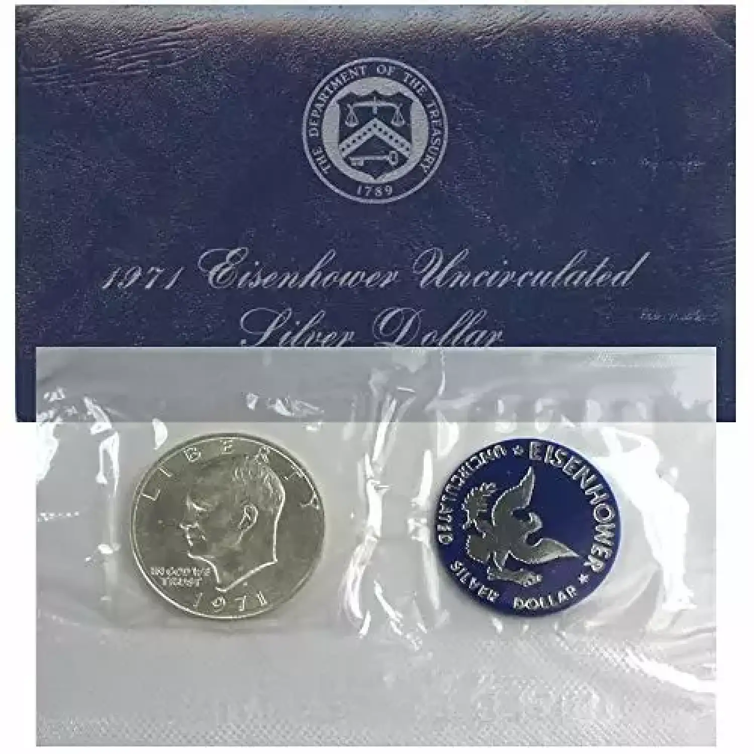 THE COIN YOU RECEIVE IS OUR CHOICE. IT WILL BE A COIN ESTIMATED TO BE OF THE GRADE / QUALITY INDICATED. THE IMAGE SHOWN IS AN EXAMPLE ONLY. Ike Dollar (1971-S) - BU - Silver