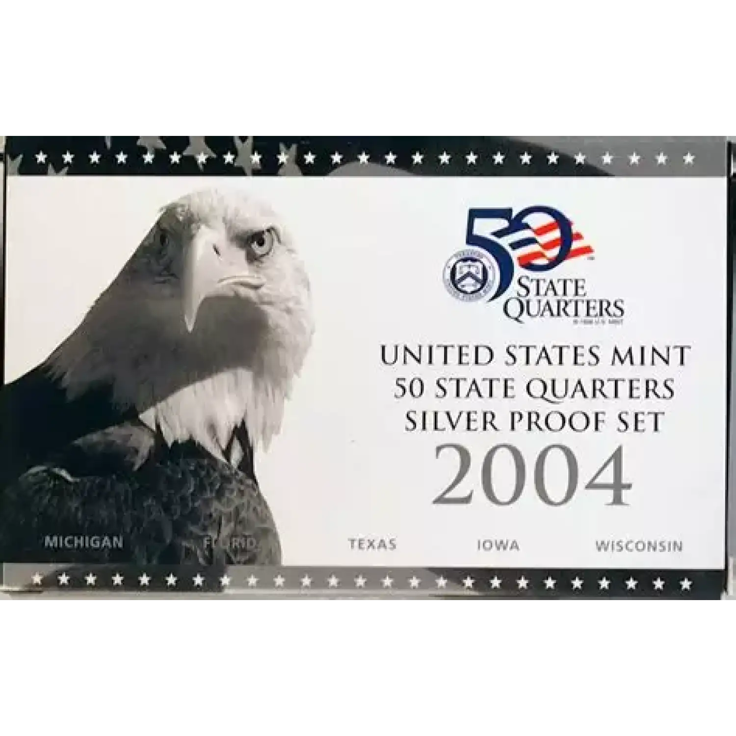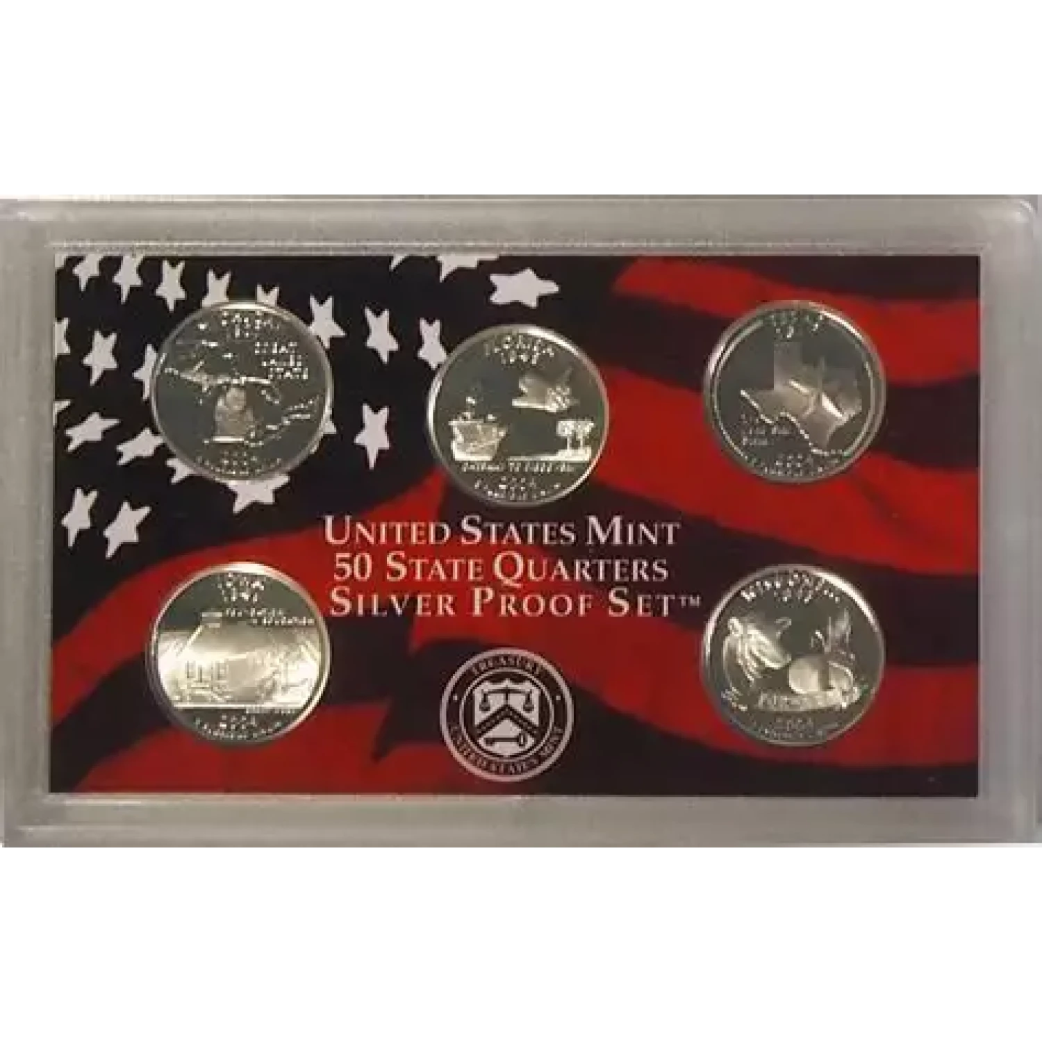 THE SET YOU RECEIVE IS OUR CHOICE. IT WILL BE A SET ESTIMATED TO BE OF THE GRADE / QUALITY INDICATED. THE IMAGE SHOWN IS AN EXAMPLE ONLY. Mint Proof Set - 2004S 5 Piece Quarter Silver ($1.25 FV) - Set