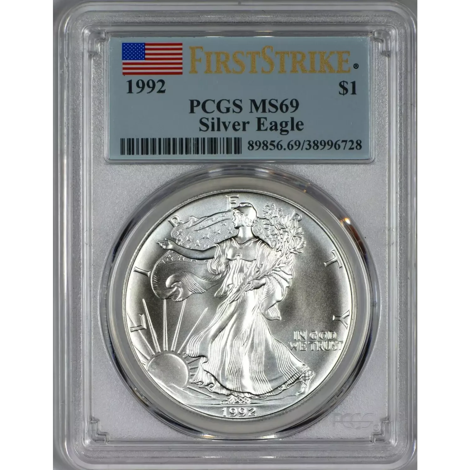 1992 Silver Eagle PCGS MS69 First Strike Flag Label