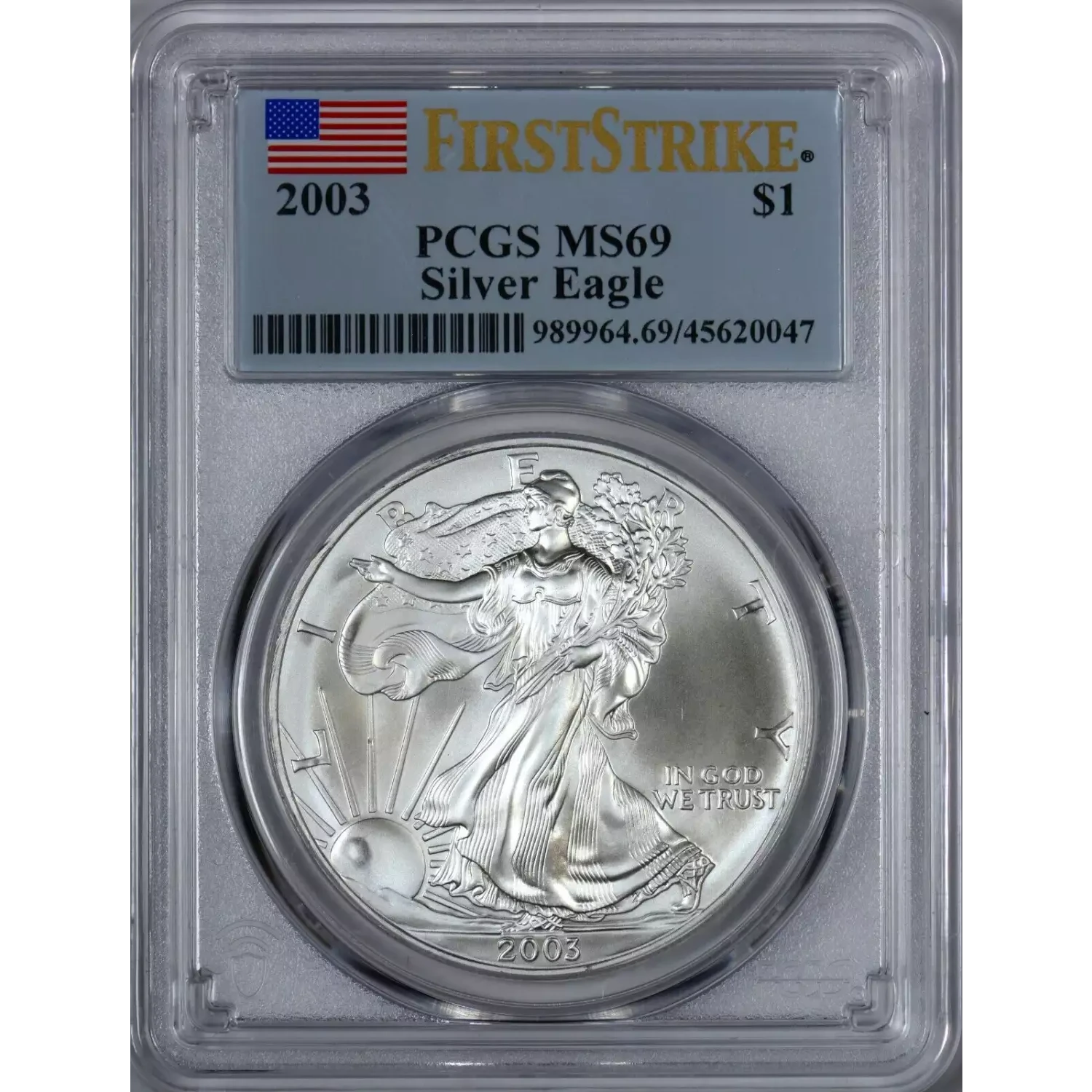 | Name | 2003 Silver Eagle PCGS MS69 First Strike Flag Label |