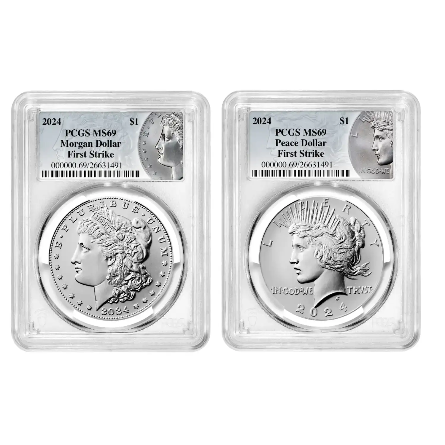 | Name | 2024 Morgan & Peace Silver Dollar BU Set PCGS MS69 First Strike |