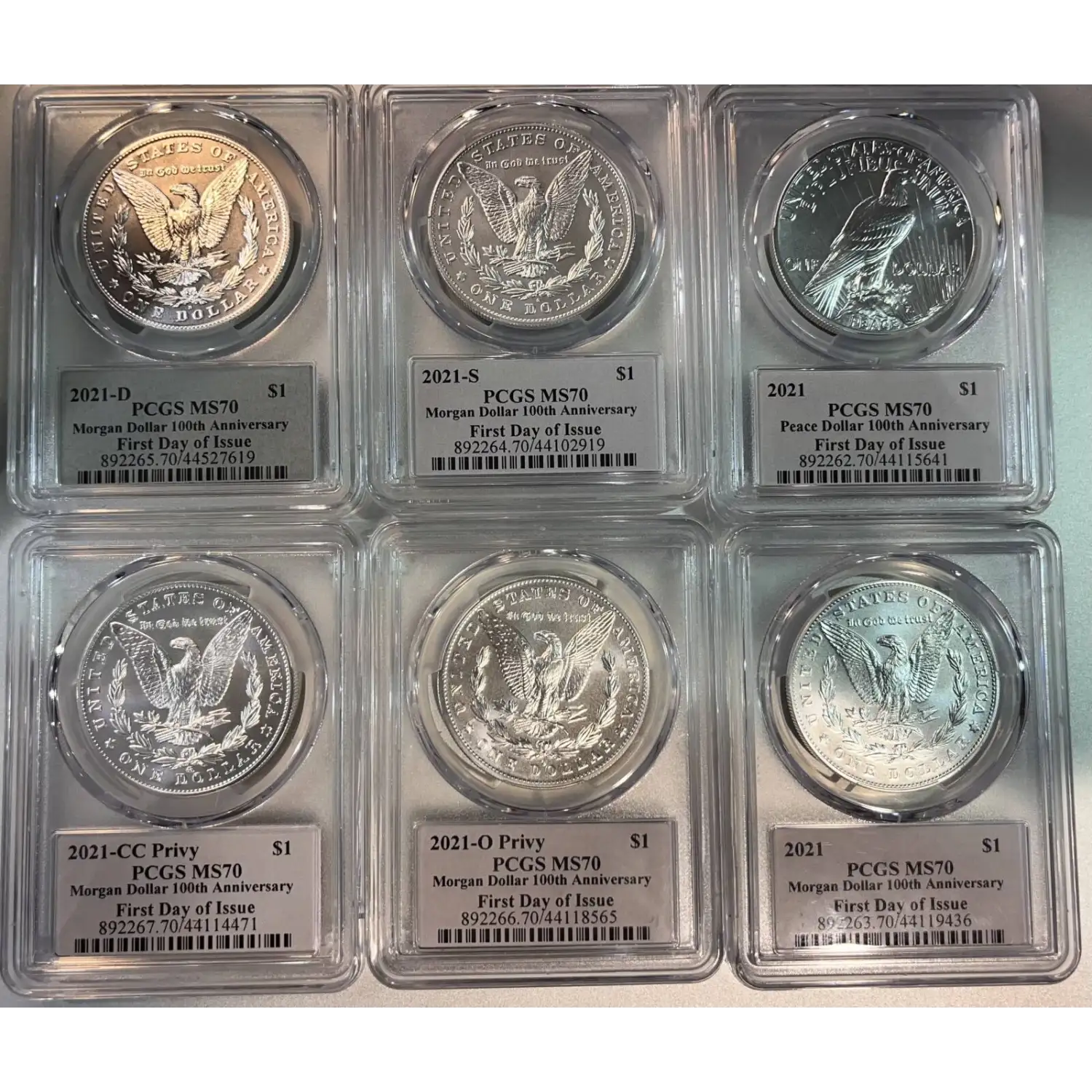 Name | 2021 Uncirculated Morgan/Peace Silver Dollar 6 Pc Set PCGS MS70 |