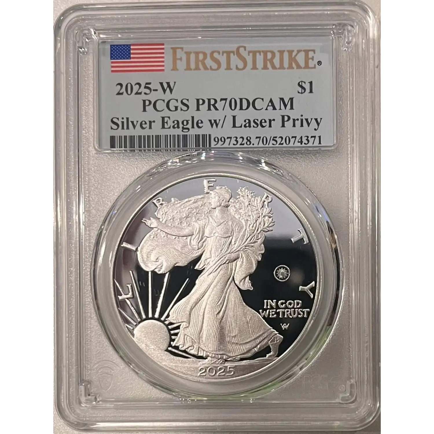 2025 Laser Engraved Silver Eagle PCGS PR70DCAM First Strike Flag Label