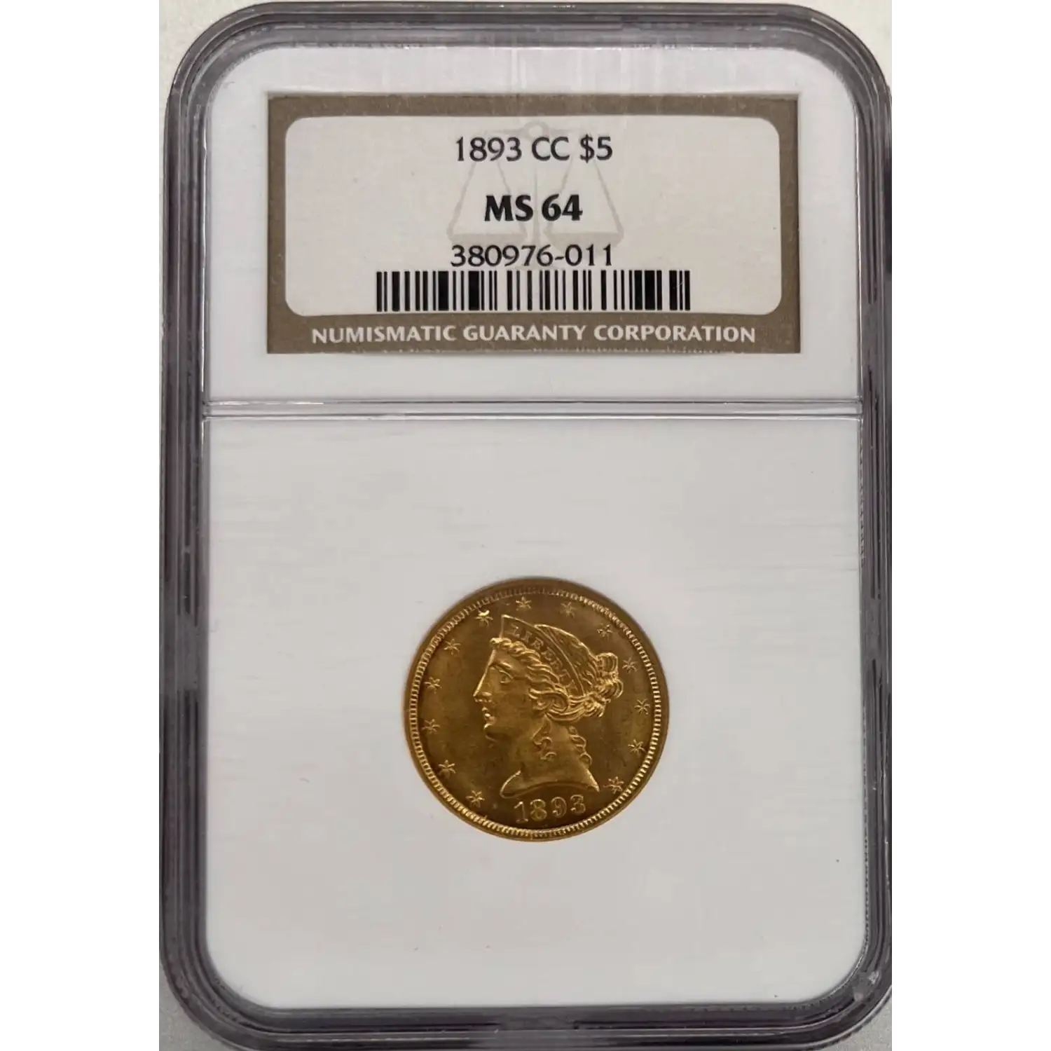 1893-CC $5 NGC MS64 Super Rare in this grade. Only 6 finer at NGC