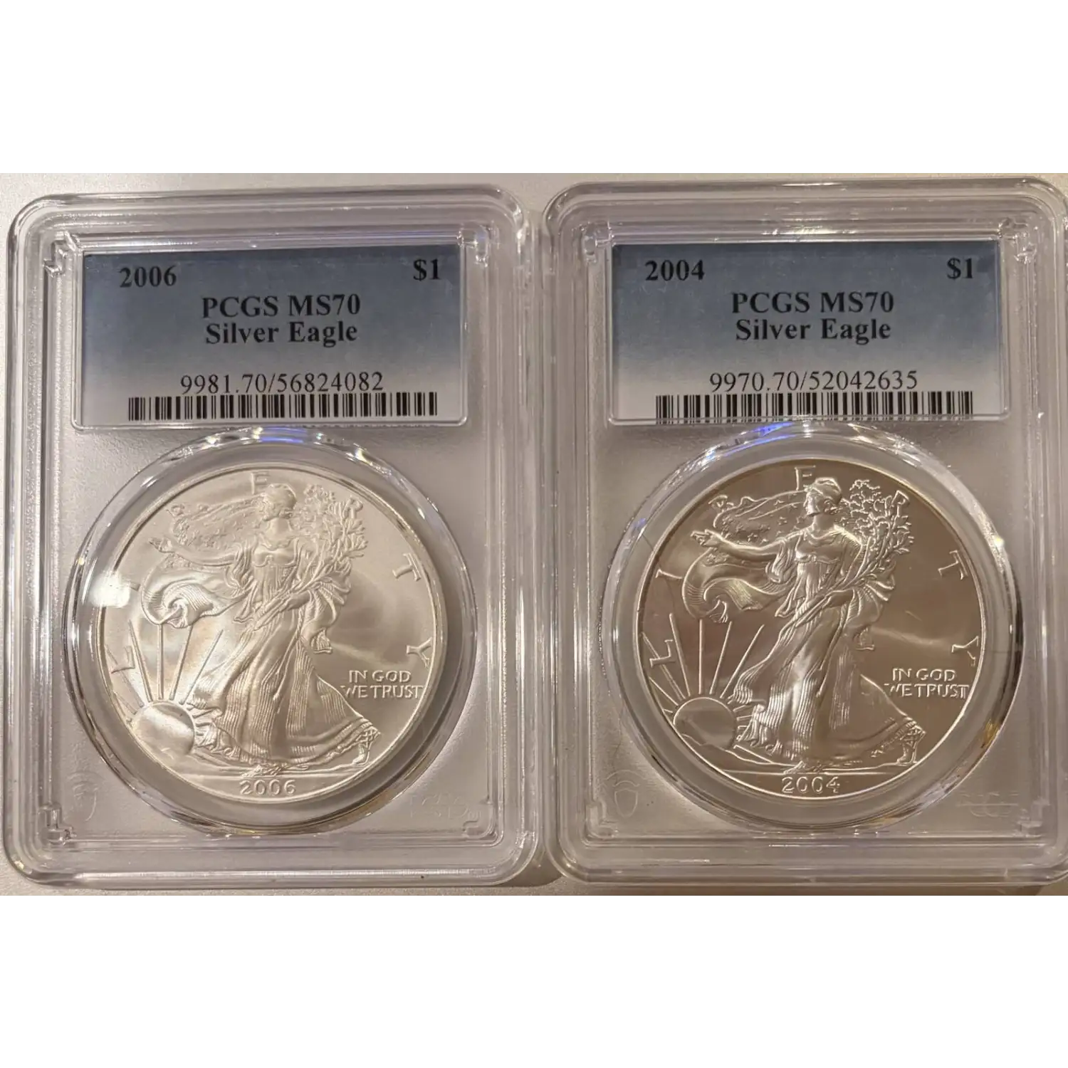 2006 and 2004 Silver Eagle PCGS MS70