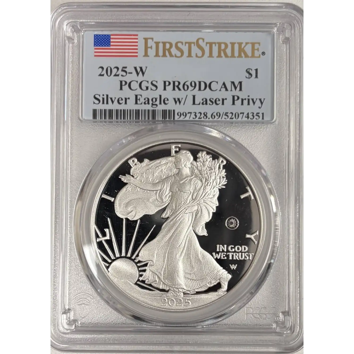 2025 Laser Engraved Silver Eagle PCGS PR69DCAM First Strike Flag Label