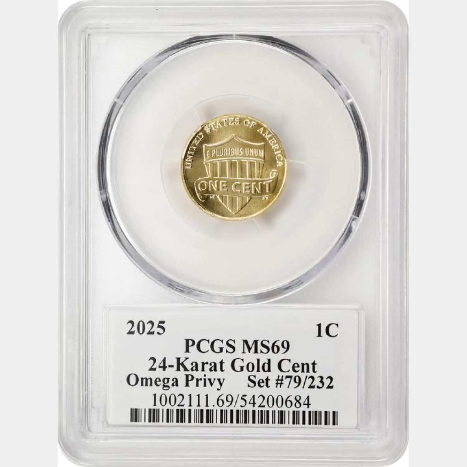 2025 24 Karat Gold Cent, Omega Privy Mark, MS-69 (PCGS)