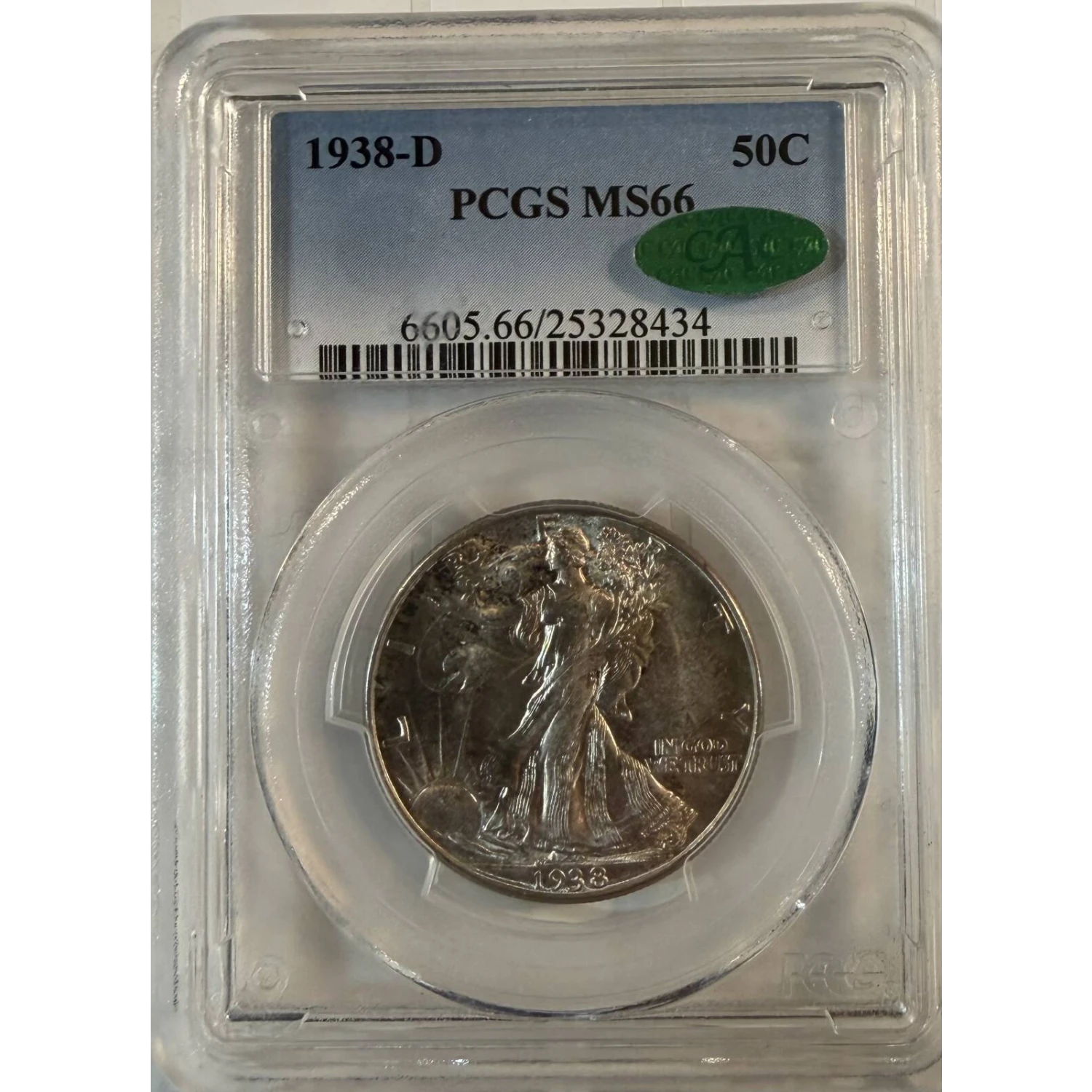 1938-D Half Dollars Liberty Walking PCGS MS-66 CAC