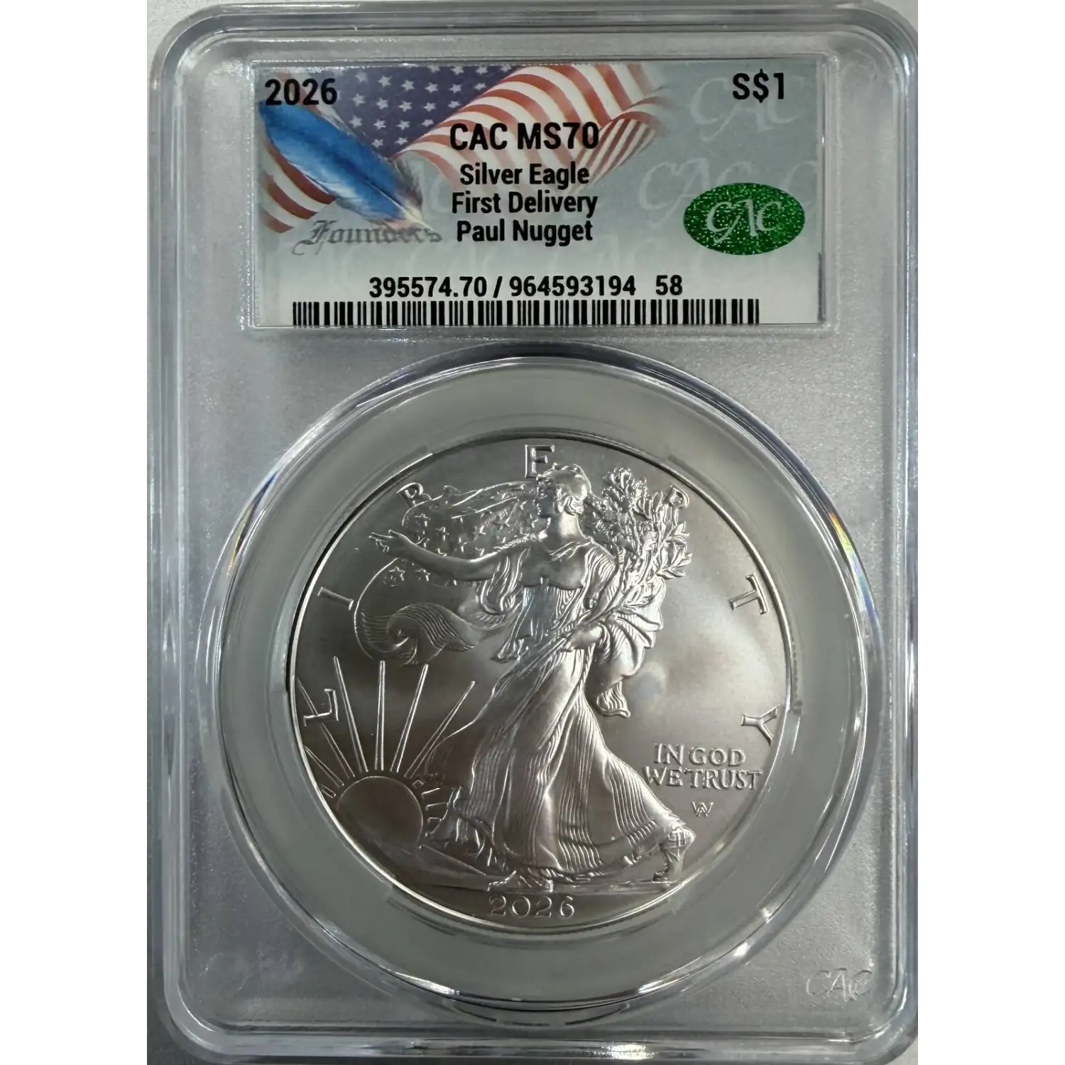 | Name | 2026 Silver Eagle CAC MS70 Pual Nugget Signature |