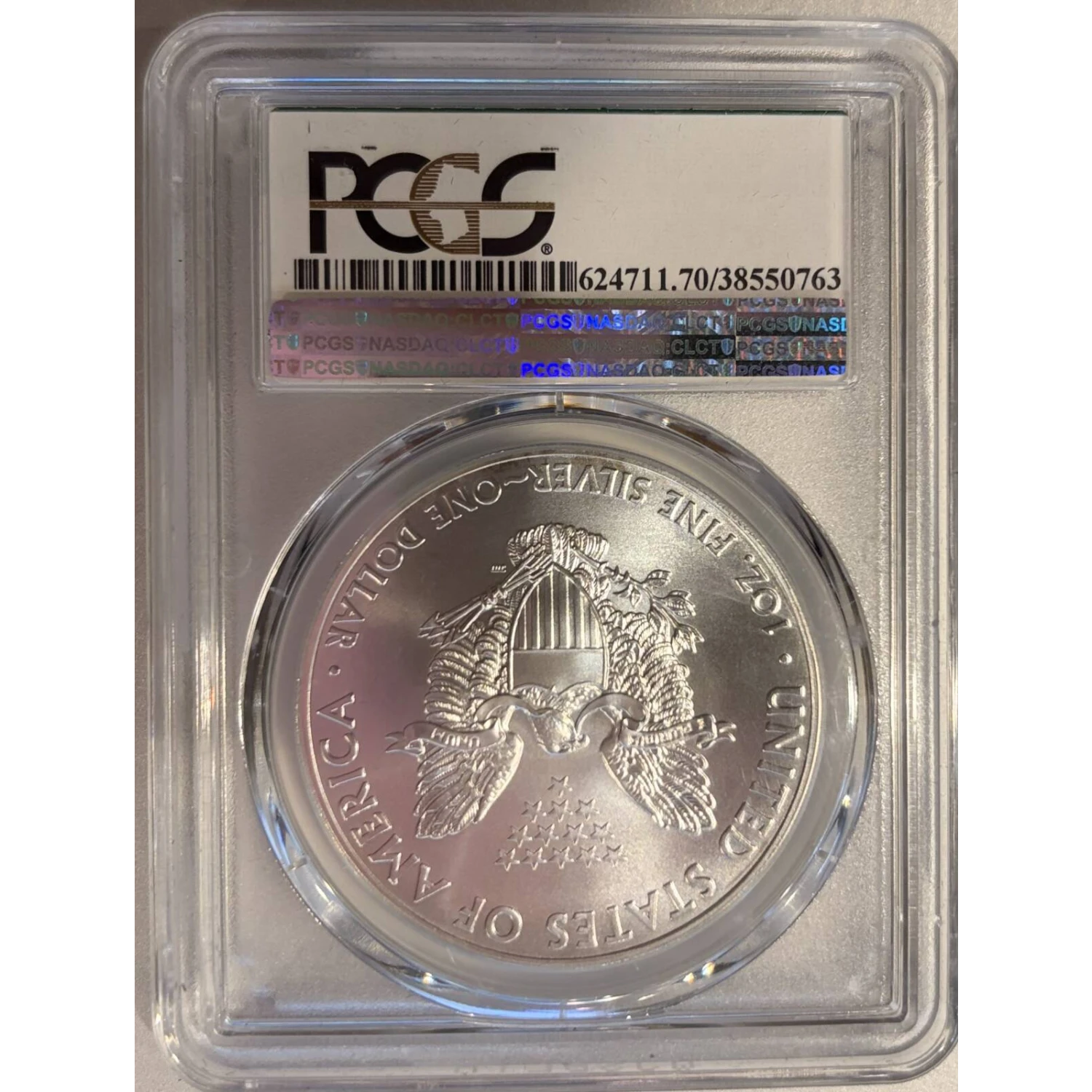 This is a super rare Phildelphia Mint Produced Silver Eagle in Perfect MS70 condition