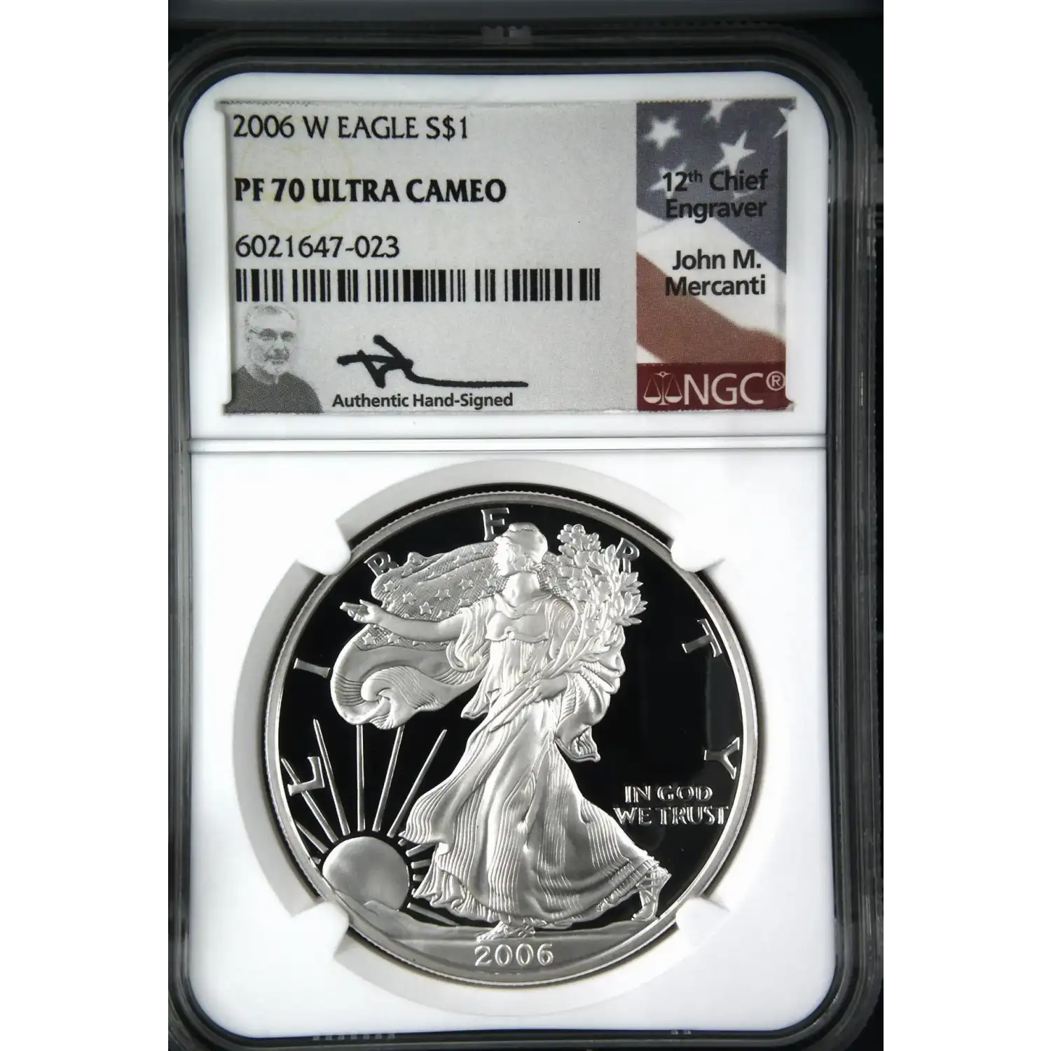 Invest in this 2006 American Silver Eagle NGC PF-70 for its investment potential and aesthetic allure. A must-have for silver enthusiasts and numismatists alike, available now for your collection.