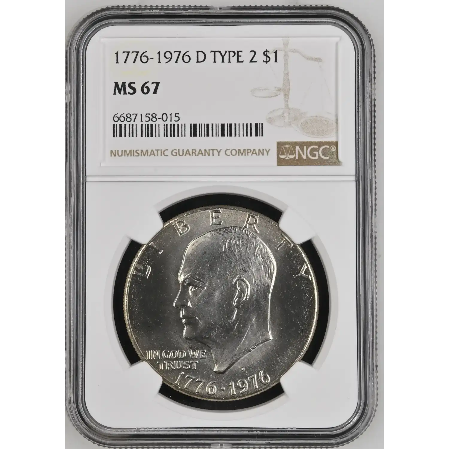 Discover the rare 1776-1976 D Eisenhower Dollar, a stunning numismatic coin from the United States Mint celebrating America's Bicentennial. This copper-clad beauty in NGC MS-67 condition offers collectors a piece of history with exceptional quality and eye appeal.