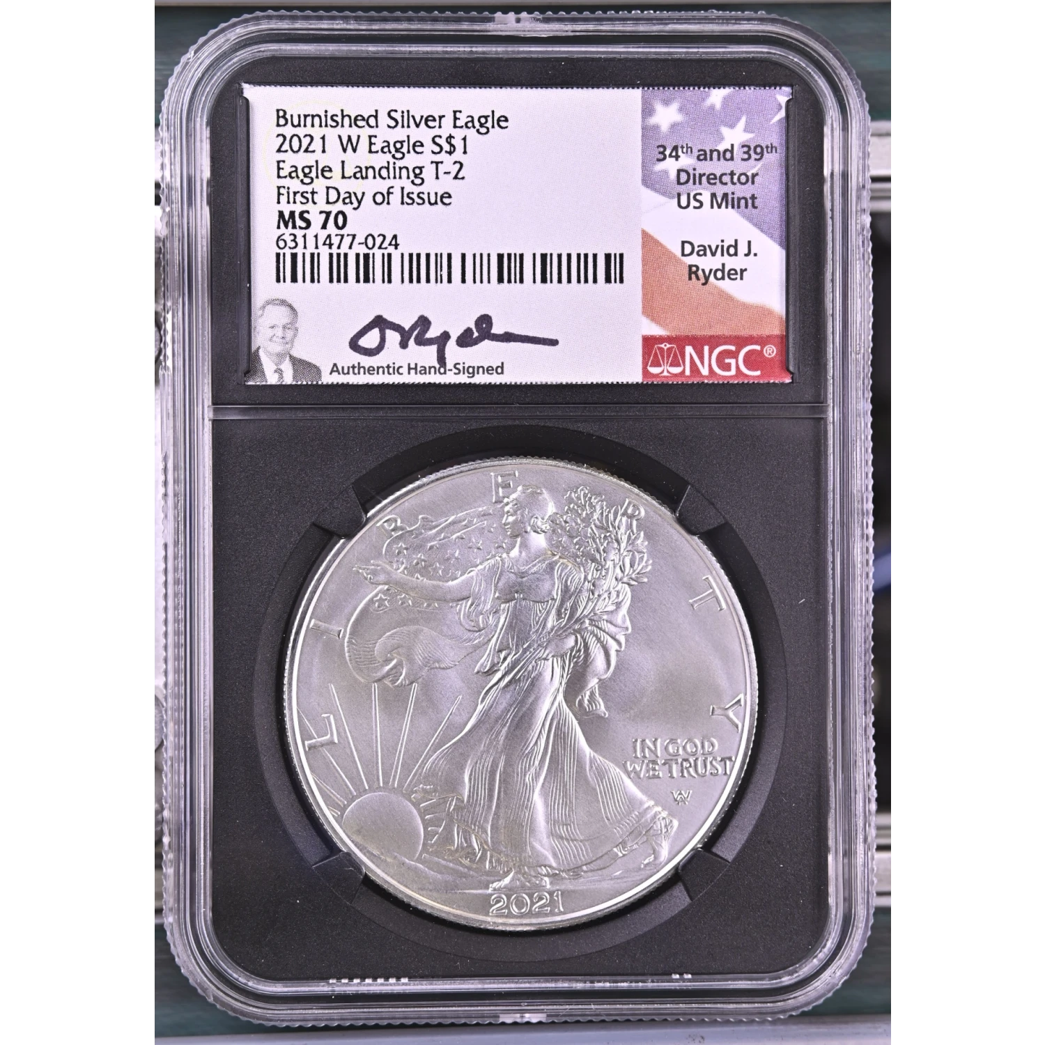 | Variety | Eagle Landing T-2 First Day of Issue Burnished Silver Eagle |