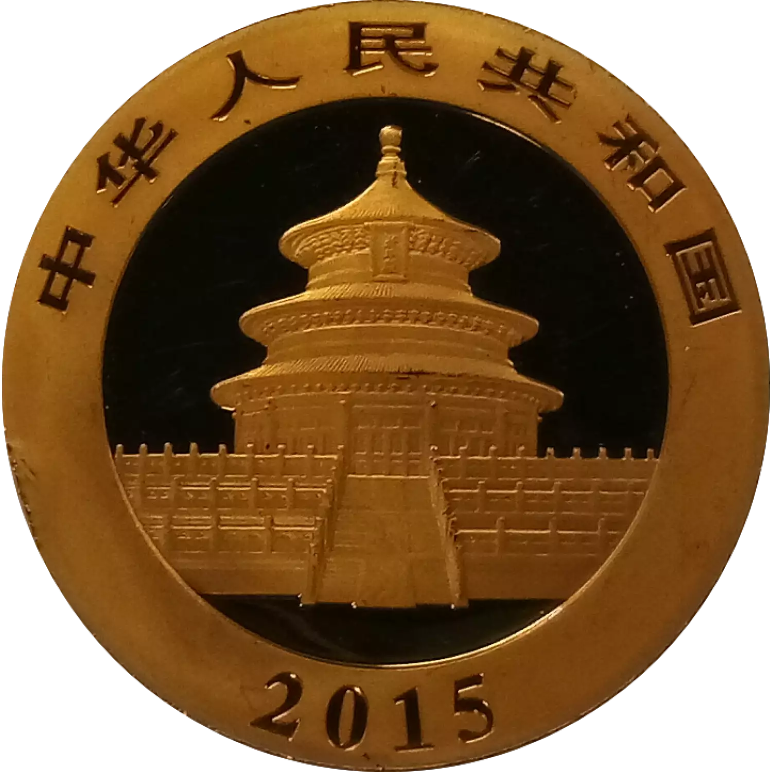 The 2015 Chinese Gold Panda coin is minted as .999 fine gold, 24 karat.